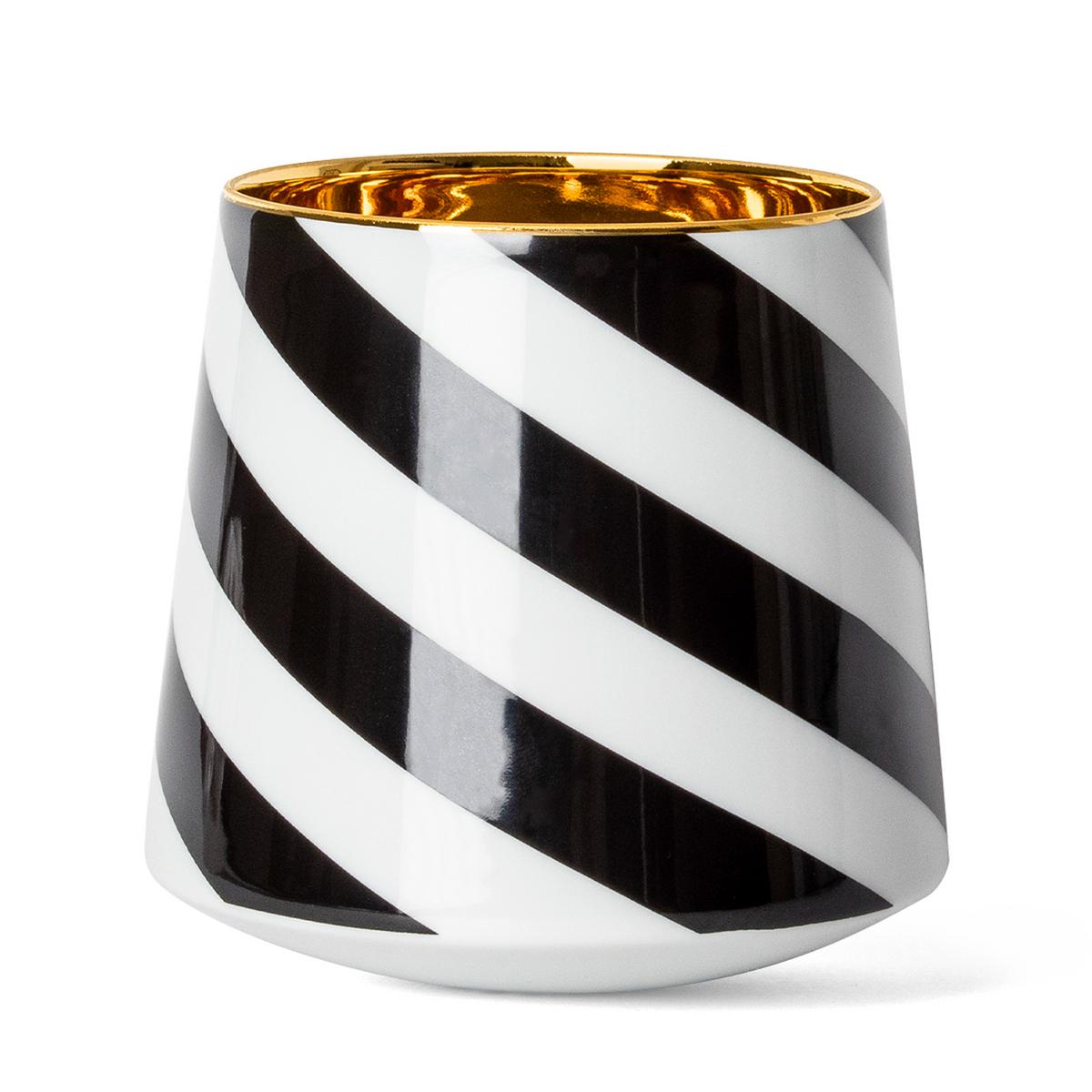 "Black Curl": Einmal gedreht, rotieren die schwarz-weißen Tumbler wie Kreisel auf dem Tisch und erzeugen so eine optische Illusion. Diese Variante besitzt ebenfalls ein glänzendes Finish.