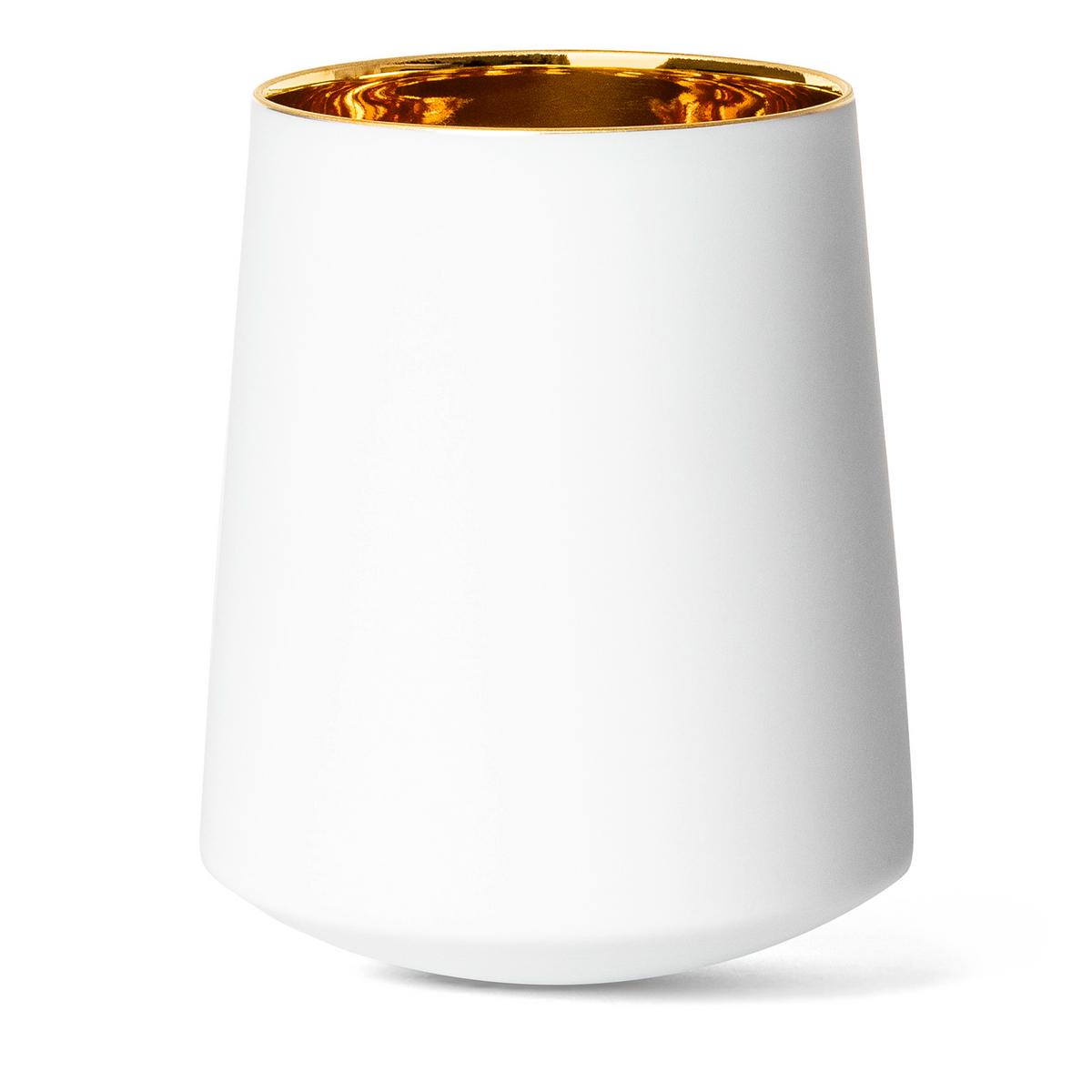 Das puristische Weiß steht im Kontrast zu dem opulenten, warm leuchtenden 24-Karat-Gold im Inneren. Die vorhandene Doppelwand der Becher hält Wein, prickelnden Champagner oder erfrischendes Mineralwasser länger kühl. Auch für den besonderen Kaffeegenuss eignen sich die Becher aufgrund ihrer Doppelwand.