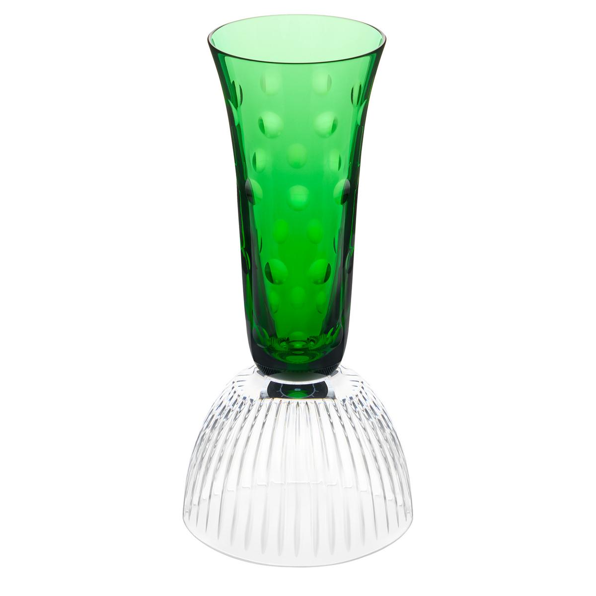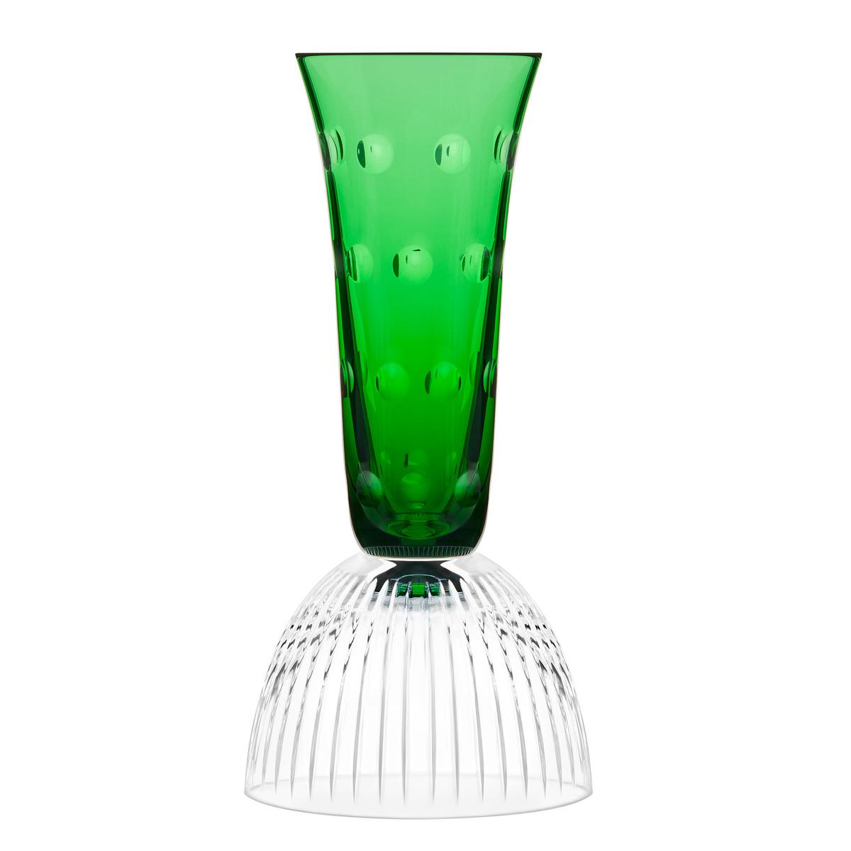 "Elegante Gefäßerweiterung. Für seine Kollektion "Les Endiablés" hat José Levy die Gläser der renommierten Crystal Saint Louis Serie entstielt und auf den Kopf gestellt. Mundgeblasenes, handgeschliffenes Kristallglas."