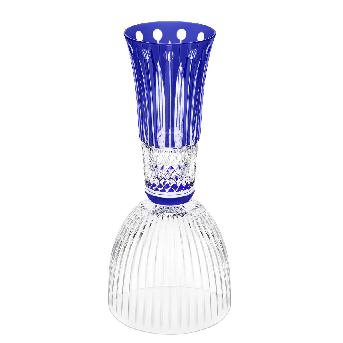 "Elegante Gefäßerweiterung. Für seine Kollektion "Les Endiablés" hat José Levy die Gläser der renommierten Crystal Saint Louis Serie entstielt und auf den Kopf gestellt. Mundgeblasenes, handgeschliffenes Kristallglas."