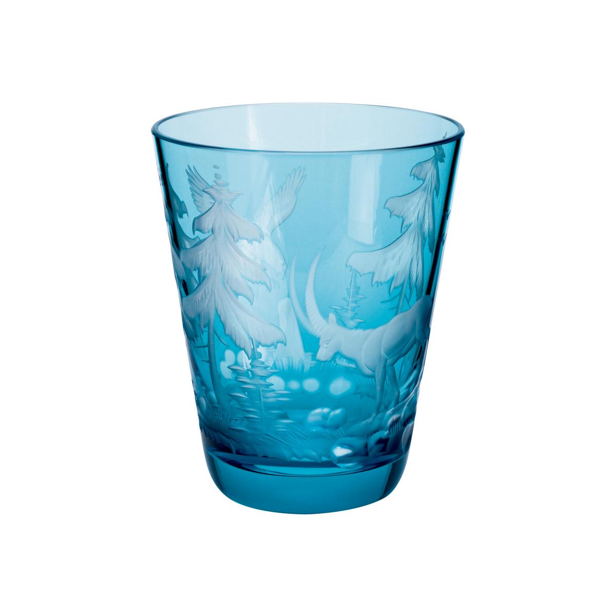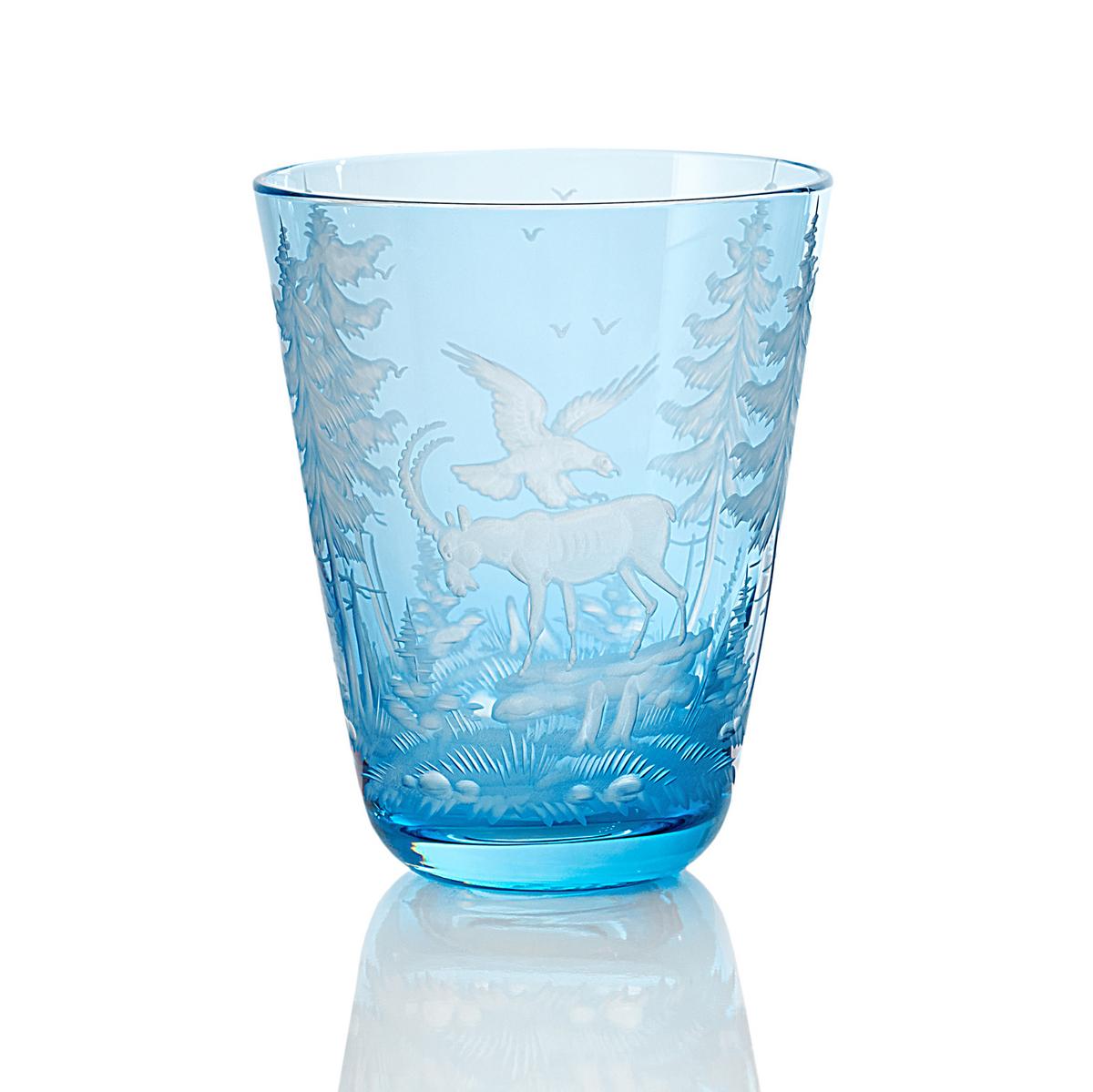 Die bunten Gläser "Schliersee" von Theresienthal sind mit europäischen Wildtieren graviert. Zu entdecken gibt es zum Beispiel Hirsche, Füchse oder Steinböcke auf leuchtenden Farben. Durch die besondere Überfangtechnik erscheinen die Tiere plastisch und lebendig.