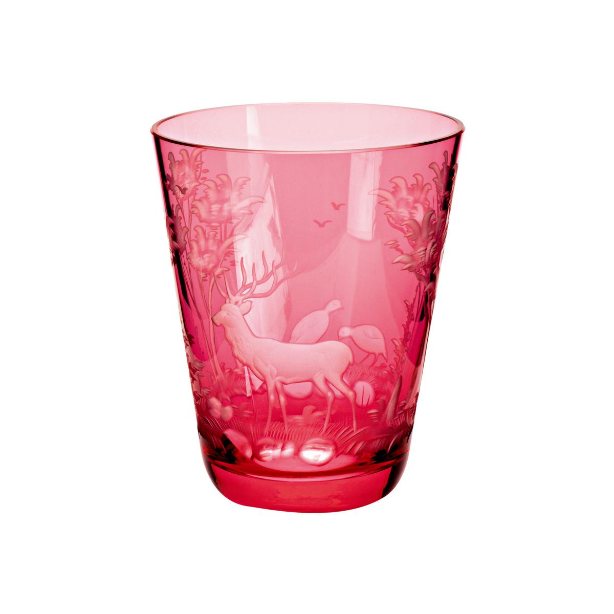 Becher "Schliersee" fuchsia, Schliff Hirsch & Rebhuhn von Theresienthal
