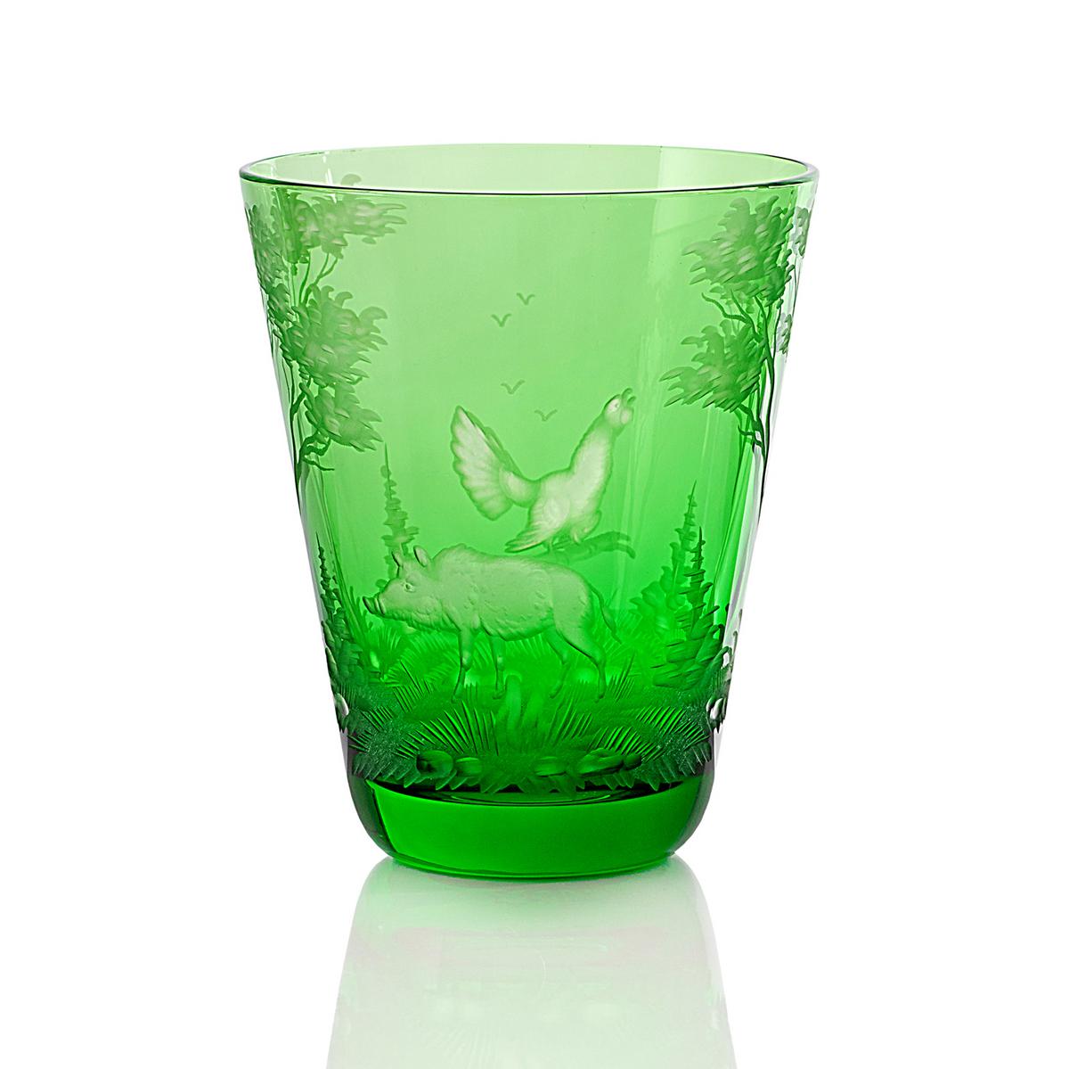 Die bunten Gläser "Schliersee" von Theresienthal sind mit europäischen Wildtieren graviert. Zu entdecken gibt es zum Beispiel Hirsche, Füchse oder Steinböcke auf leuchtenden Farben. Durch die besondere Überfangtechnik erscheinen die Tiere plastisch und lebendig.
