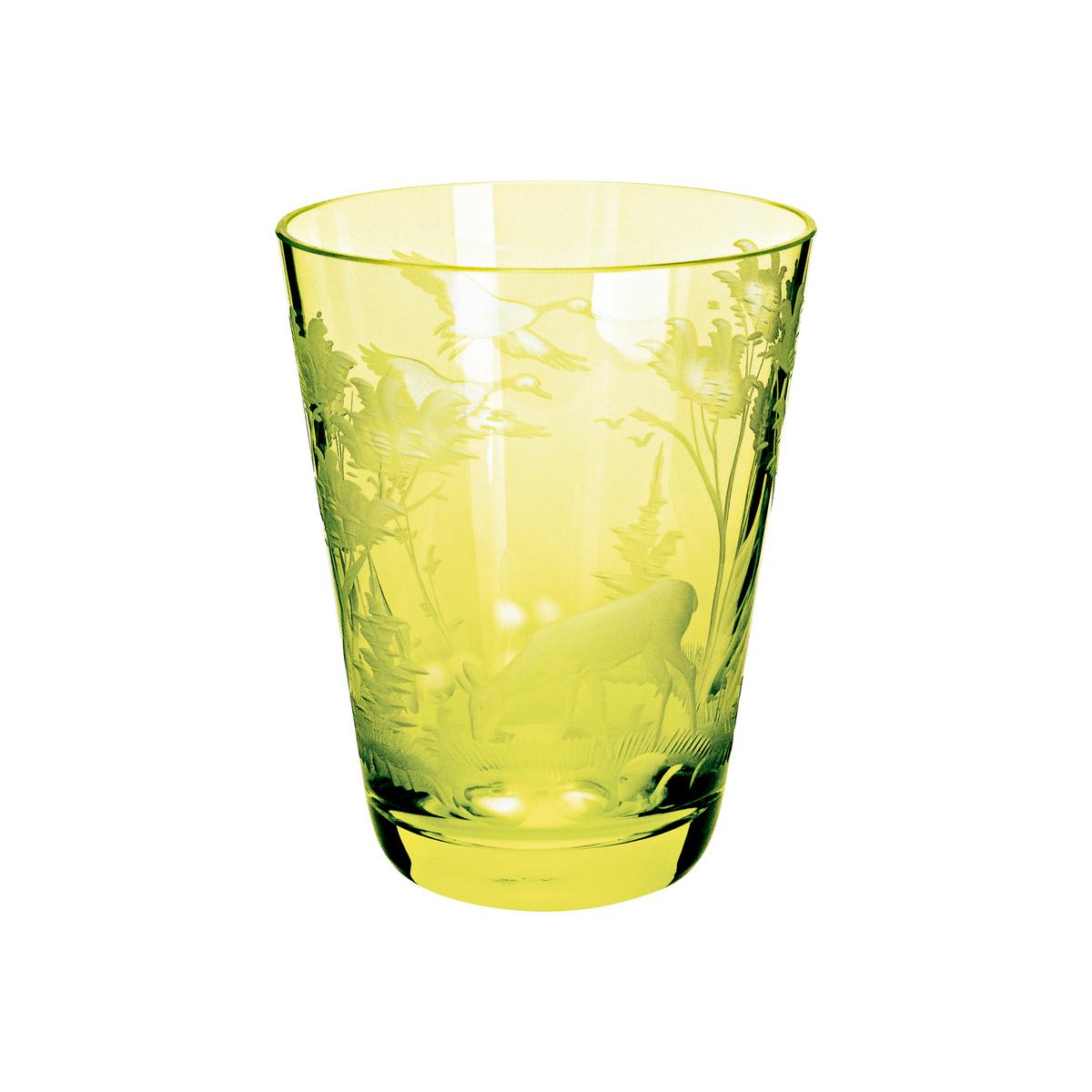 Becher "Schliersee" lime, Schliff Reh & Wildente von Theresienthal