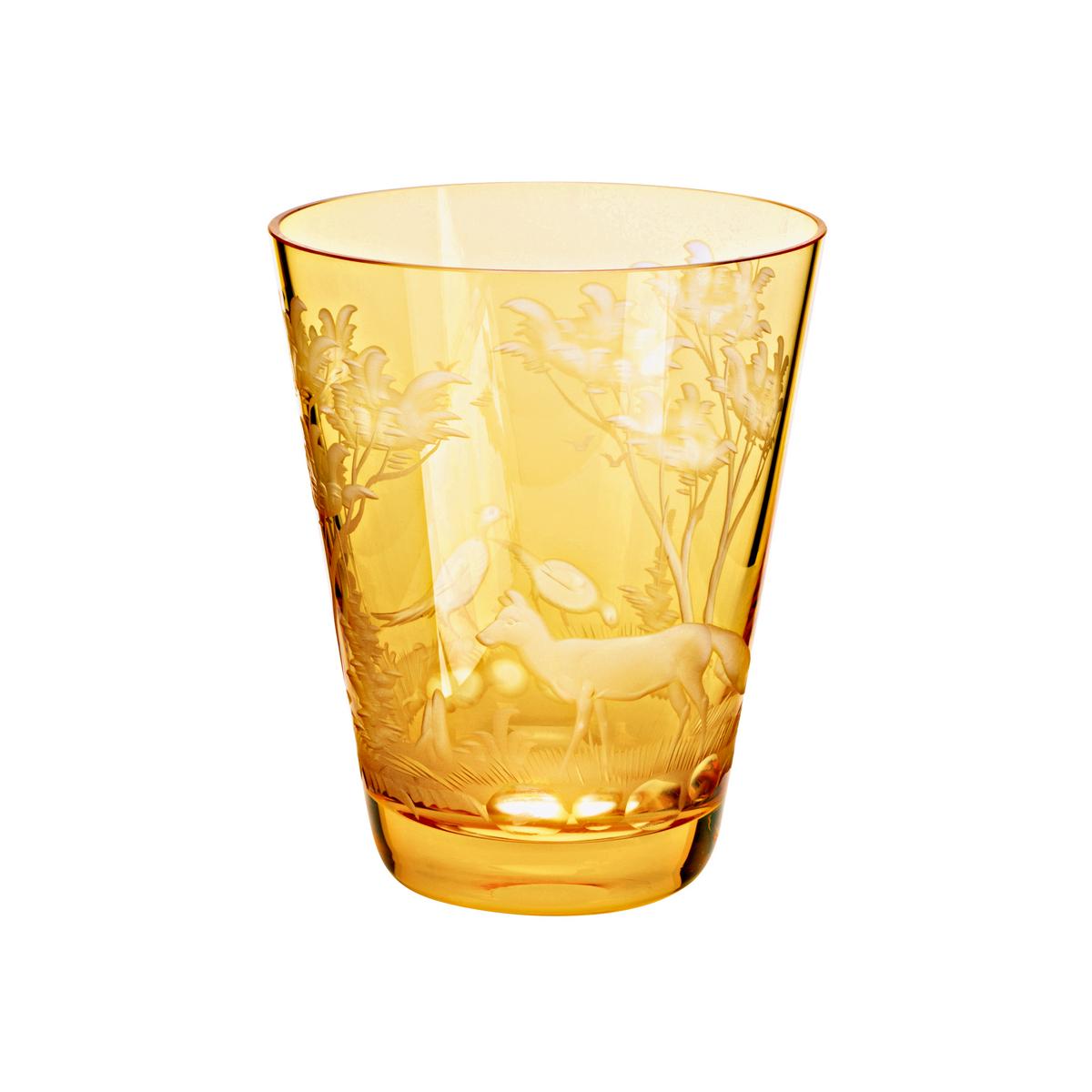 Die bunten Gläser "Schliersee" von Theresienthal sind mit europäischen Wildtieren graviert. Zu entdecken gibt es zum Beispiel Hirsche, Füchse oder Steinböcke auf leuchtenden Farben. Durch die besondere Überfangtechnik erscheinen die Tiere plastisch und lebendig.