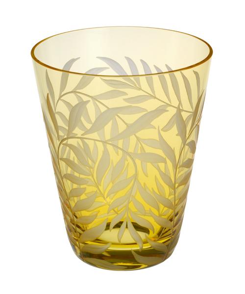 "Zomer in het glas! Theresienthal maakt op eeuwenoude wijze uniek glaswerk: twee dunne laagjes kristalglas worden op elkaar gelegd, één transparant en één gekleurd. Vervolgens snijdt een glasbewerker figuren uit het gekleurde glas, waardoor dit op die plekken transparant wordt. Deze Franse serie met de naam Feuilles, bestaande uit zes glazen en een karaf, zorgt voor een instant zomergevoel."