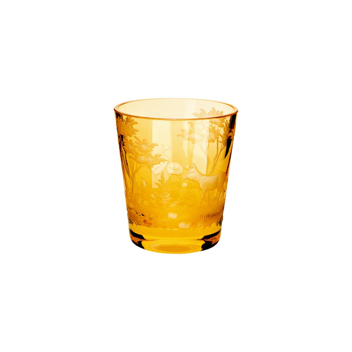 Wodkabecher "Schliersee" orange, Schliff Fuchs & Fasan von Theresienthal