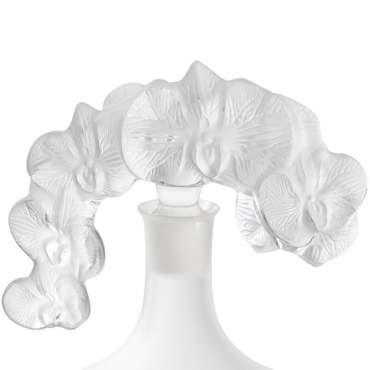 Die Karaffe "Orchidée" von Lalique wird in Frankreich aus feinstem Kristallglas per Hand komplett hergestellt und geschliffen. Die Karaffe wird sicher verpackt in einer hochwertigen Lalique Geschenkbox geliefert.