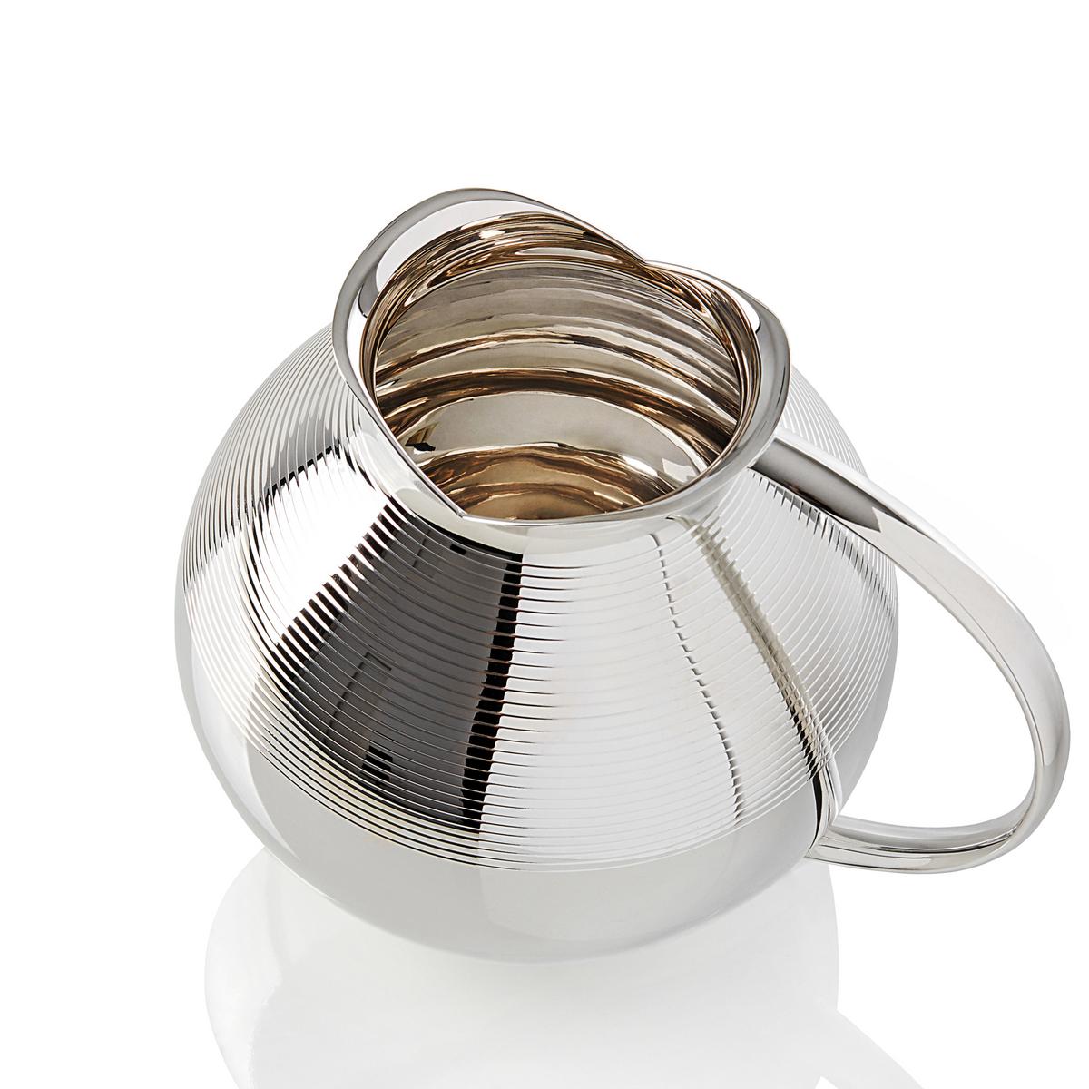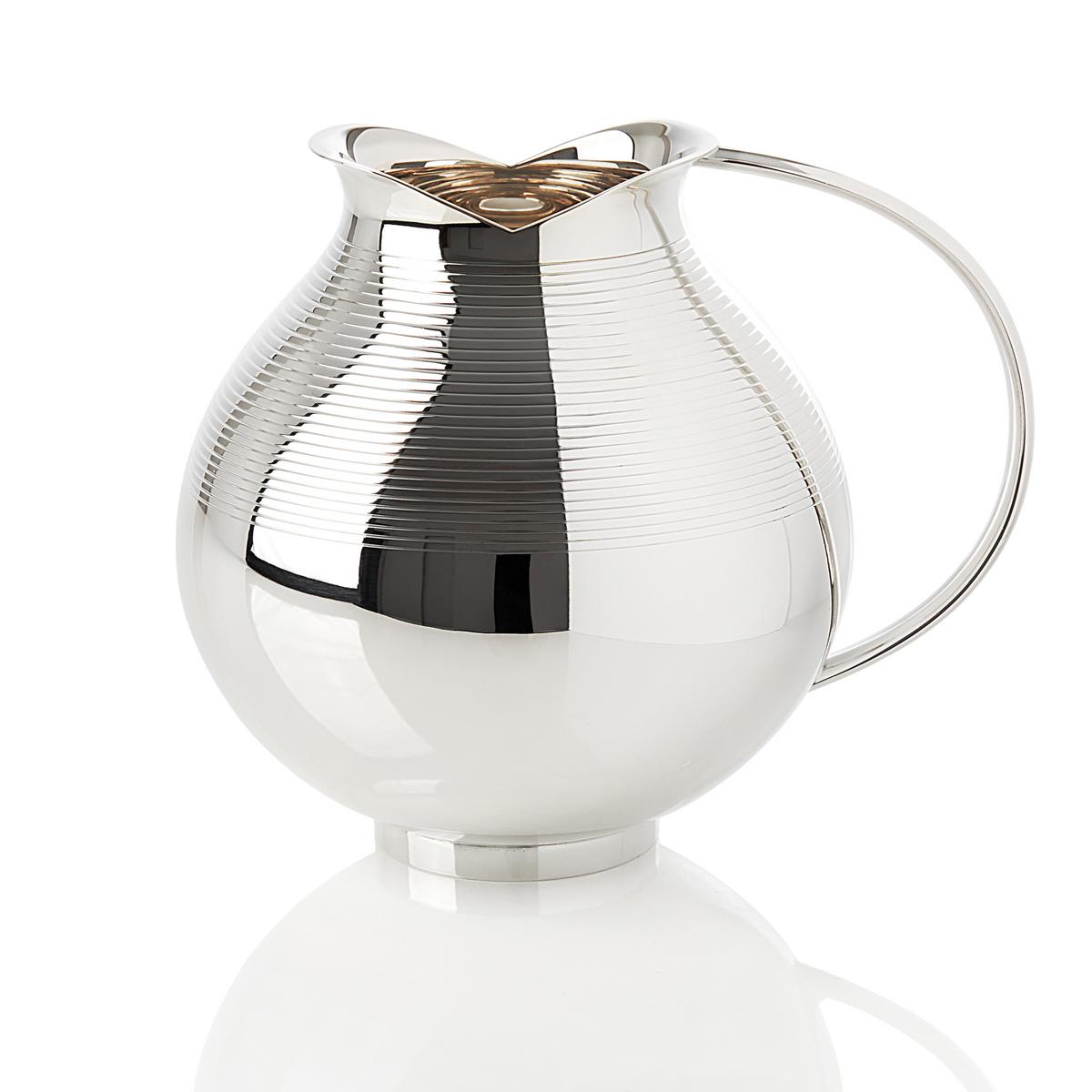 Der versilberte Krug „Transat“ von Ercuis muss mit an Bord. Die klassischen Rundungen und die feinen Gravierungen zitieren die Formensprache der 30er und 40er Jahre und sind eine Hommage an die Zeit, als Silberware von Ercuis auf luxuriösen Ozeanlinern wie der „Normandie“ und der „Île de France“ die Passagiere beglückte.