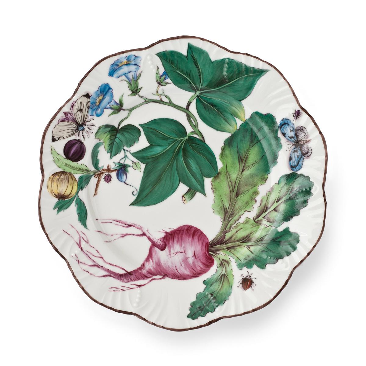"Feuillage" von Alberto Pinto entführt Sie in die zauberhafte Welt botanischer Kunst. Inspiriert von historischen englischen Porzellanservices des 18. Jahrhunderts, vereint dieses edle Geschirr kunstvolle Darstellungen von Blättern, Blüten, Beeren, Früchten, Gemüse und Insekten – meisterhaft von Hand auf feinstem Limoges-Porzellan gemalt.