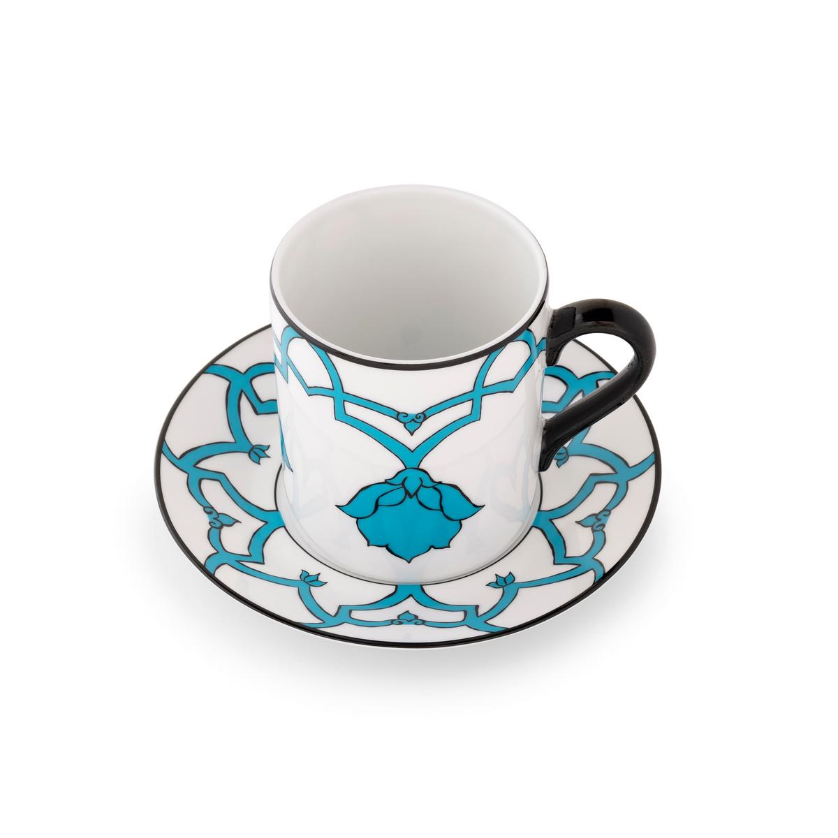 "Jaipur Blue" Henkelbecher mit Unterteller von Alberto Pinto