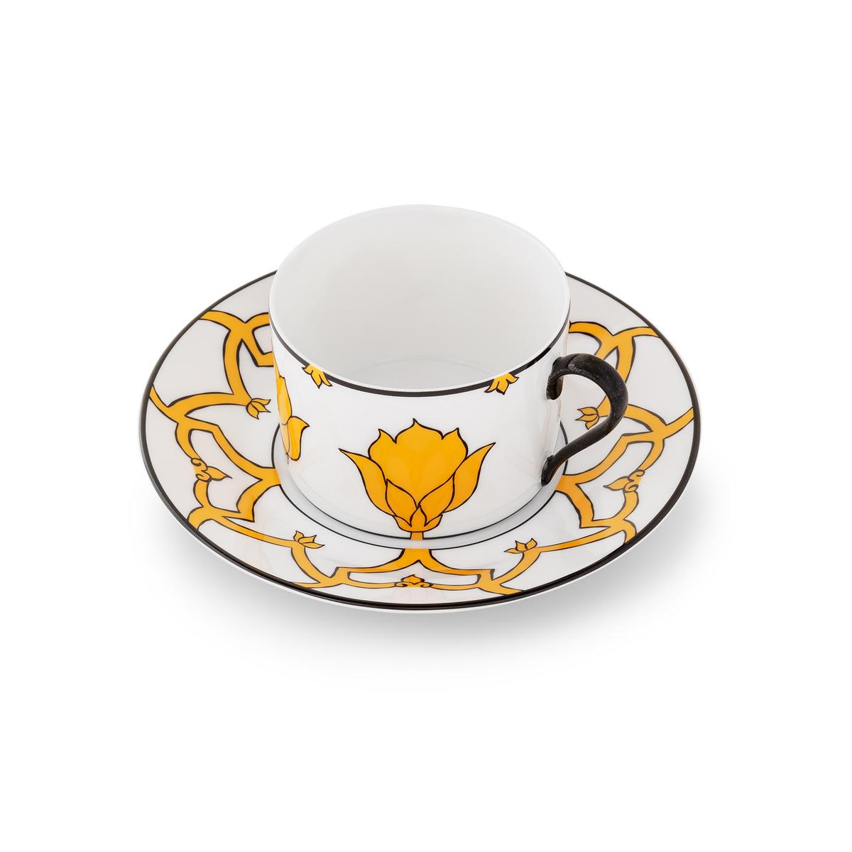 "Jaipur Yellow" Teetasse mit Unterteller von Alberto Pinto