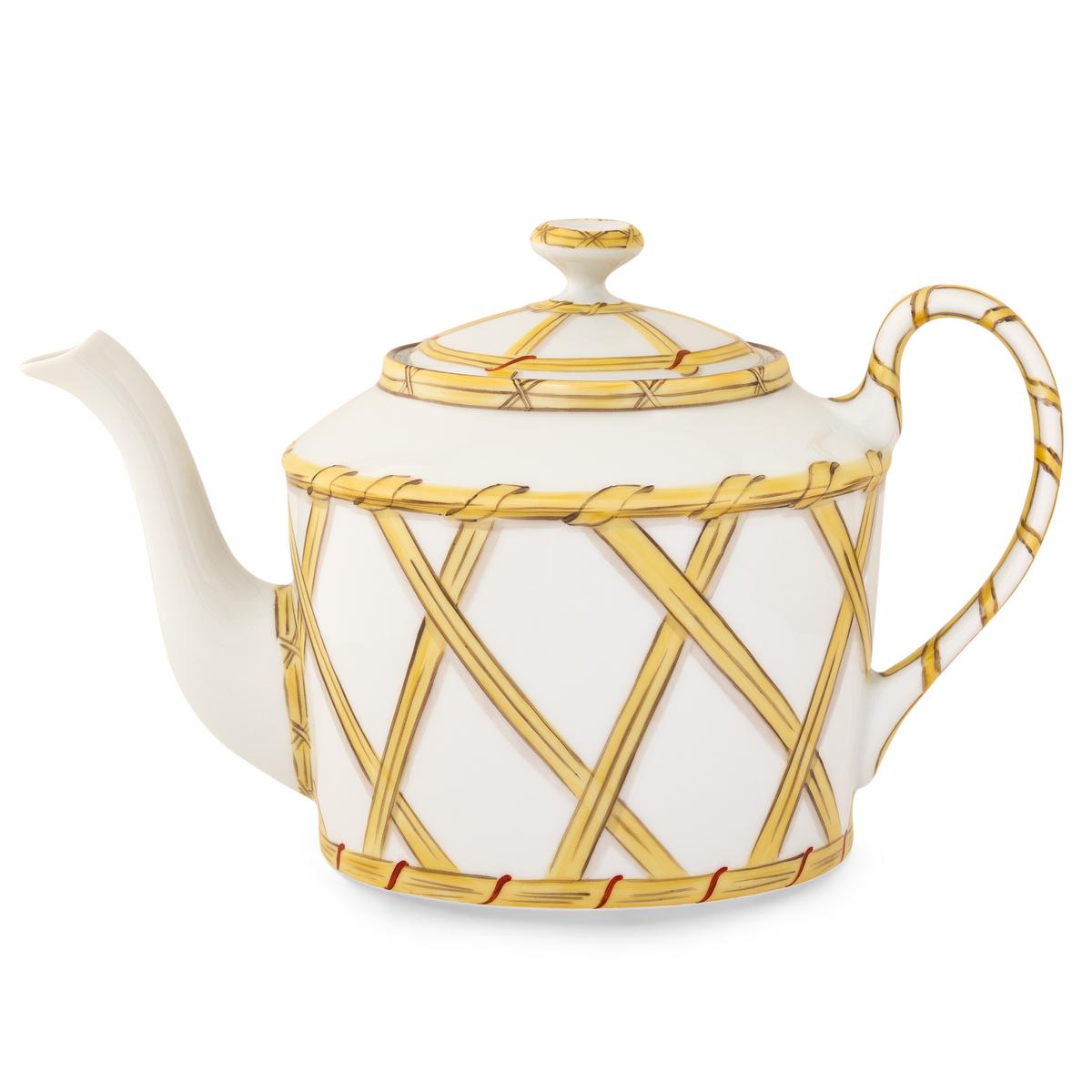 Lässig-eleganter Gartenflair. Das Tafelservice "Vannerie Cottage" von Alberto Pinto zelebriert den natürlichen Vintage-Charme von Rattan. Inspiriert von den legendären Rattan-Möbeln aus den 1930er Jahren von Jean-Michel Frank, dekoriert Alberto Pinto strahlend weißes Limoges-Porzellan mit strohgelben Chromolithographien von rustikalen Rattan-Geflechten. Ob im Sommer auf der Terrasse oder später im Jahr im Wintergarten, verbringen Sie mit "Vannerie Cottage" ruhige Sonnenstunden an der gedeckten Tafel.