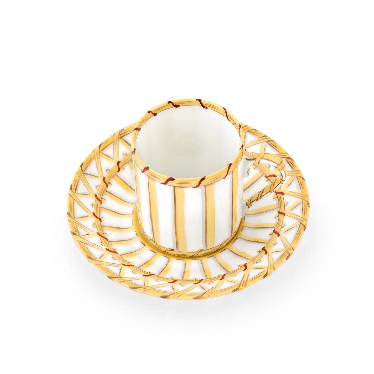 Lässig-eleganter Gartenflair. Das Tafelservice "Vannerie Cottage" von Alberto Pinto zelebriert den natürlichen Vintage-Charme von Rattan. Inspiriert von den legendären Rattan-Möbeln aus den 1930er Jahren von Jean-Michel Frank, dekoriert Alberto Pinto strahlend weißes Limoges-Porzellan mit strohgelben Chromolithographien von rustikalen Rattan-Geflechten. Ob im Sommer auf der Terrasse oder später im Jahr im Wintergarten, verbringen Sie mit "Vannerie Cottage" ruhige Sonnenstunden an der gedeckten Tafel.