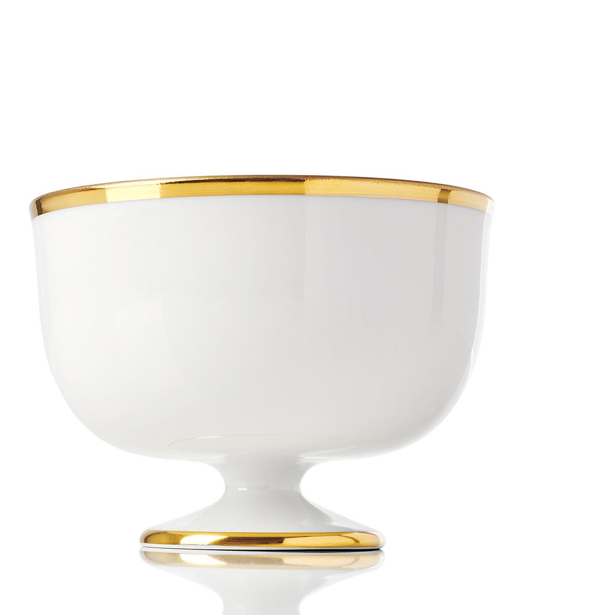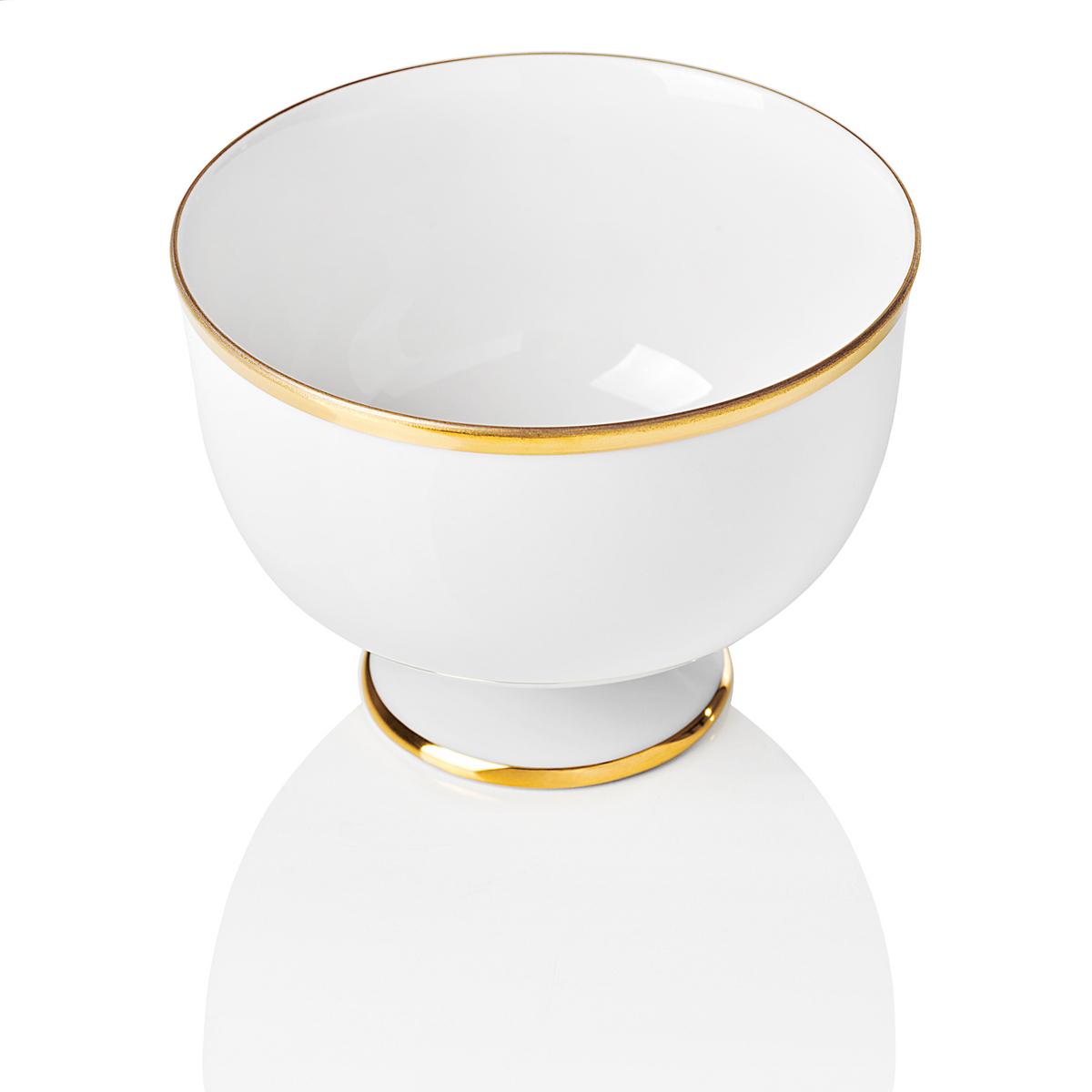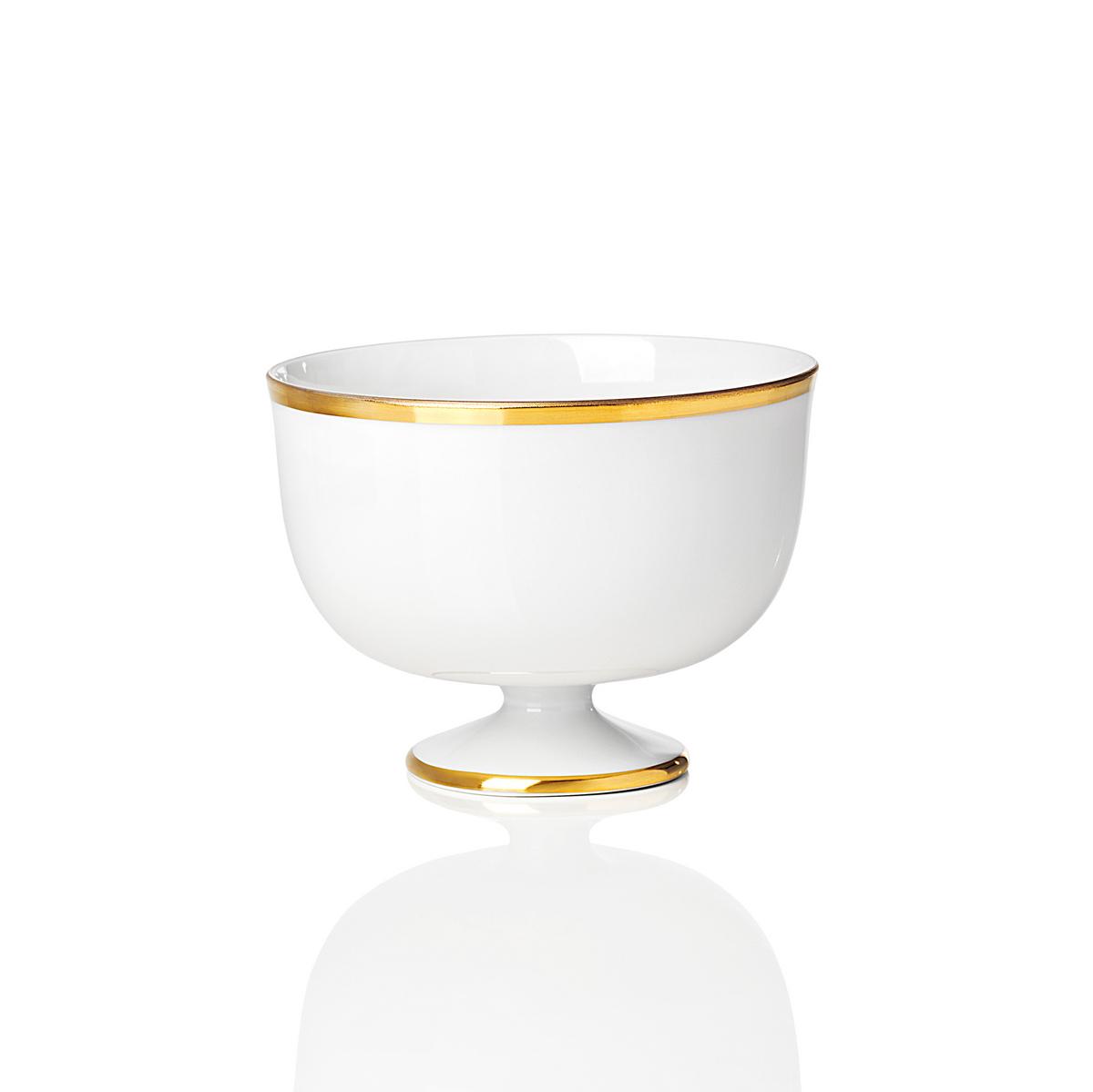 Die Sorbetschale auf Fuß von Augarten ist ein elegantes Porzellan-Accessoire für Ihre Tafel. Die Schale ist aus feinstem Porzellan gefertigt und mit einem eleganten Goldrand verziert.