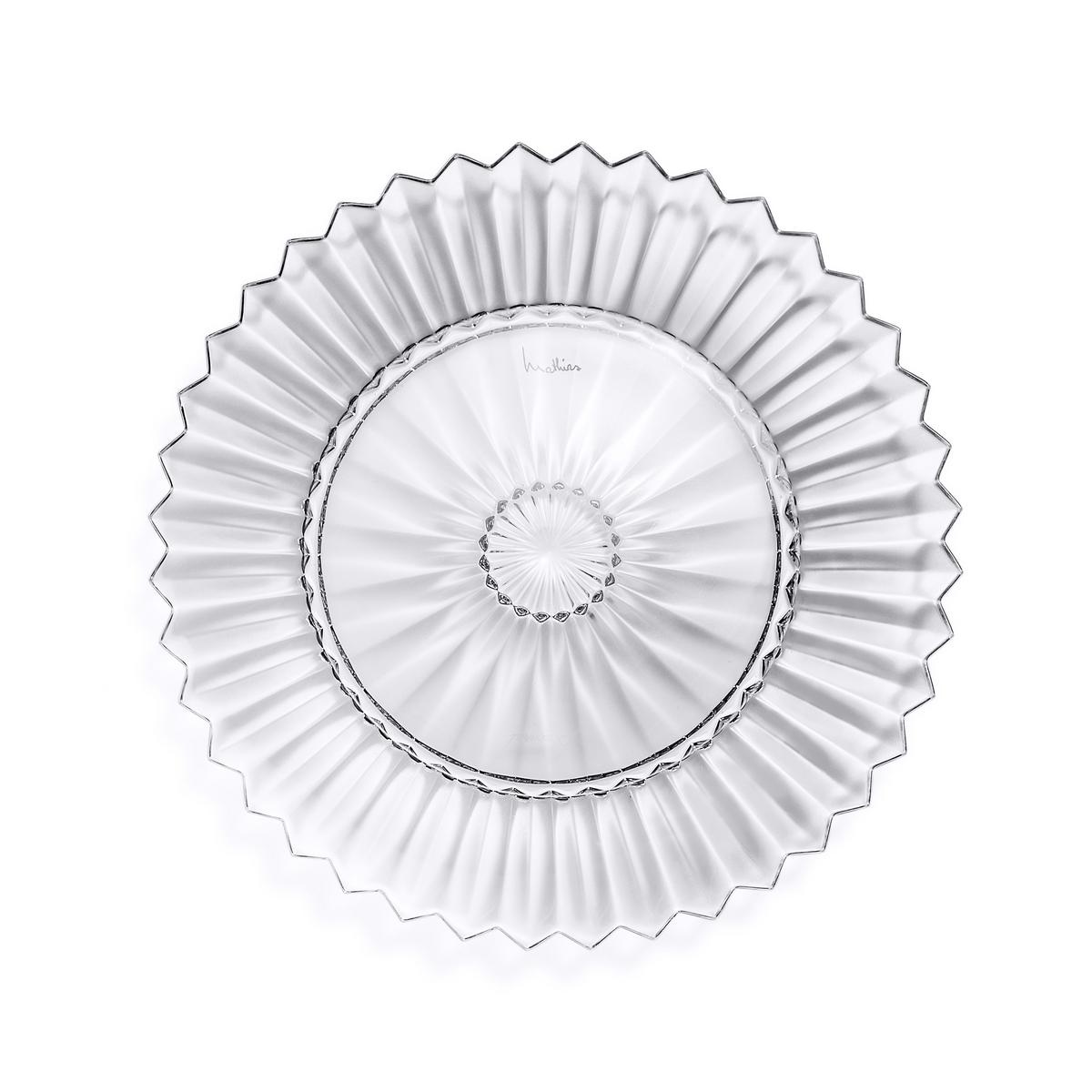 Servieren Sie pures Licht auf den Kristallglastellern "Mille Nuits" von Baccarat. Die berühmte Glasmanufaktur Baccarat zeigt hier ihr gesamtes technisches und künstlerisches Können. Ein gewellter Rand umläuft die Teller wie einen meistervoll geformten Tarte-Boden. Der Rand akzentuiert das elegante Strahlendekor auf den Unterseiten der Teller, das wie ein Prisma atemberaubende optische Effekte kreiert.