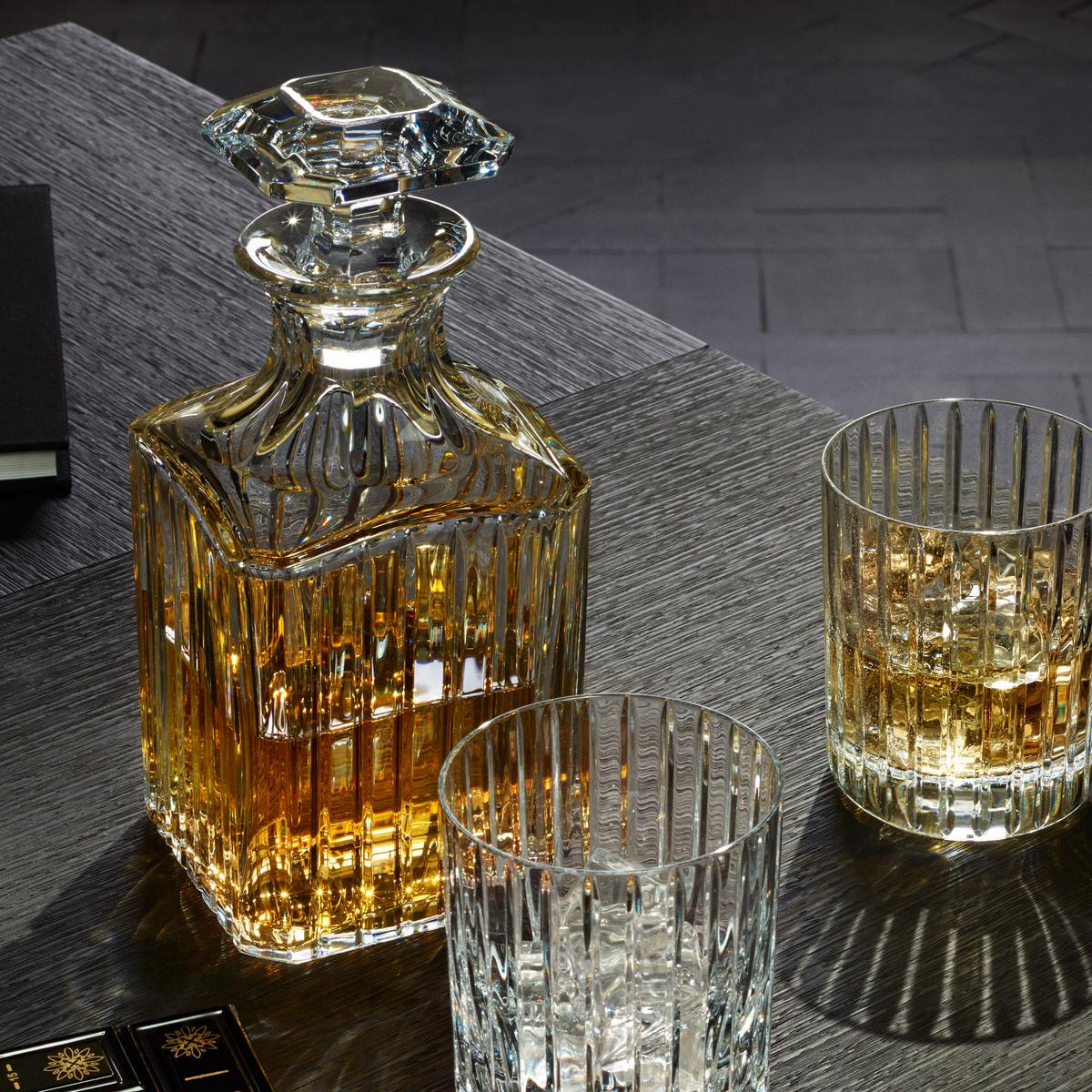 Ein neues Geschmacksabenteuer wartet. Die quadratische Karaffe "Harmonie" aus der gleichnamigen Barkollektion von Baccarat ist eine moderne Bar-Ikone für kreative Mixologen und entdeckungslustige Liebhaber seltener Spirituosen. Hergestellt von Hand aus reinem Kristallglas, reflektiert die Karaffe die Farben ihres kostbaren Inhalts, ohne sie zu verfälschen. Lange, schlichte Linien betonen die klassische Silhouette der Karaffe und verleihen ihr Textur und Räumlichkeit. Der abgeschrägte Verschluss mit Diamantenschliff krönt die Karaffe mit geometrischer Raffinesse und Ausdruckskraft.