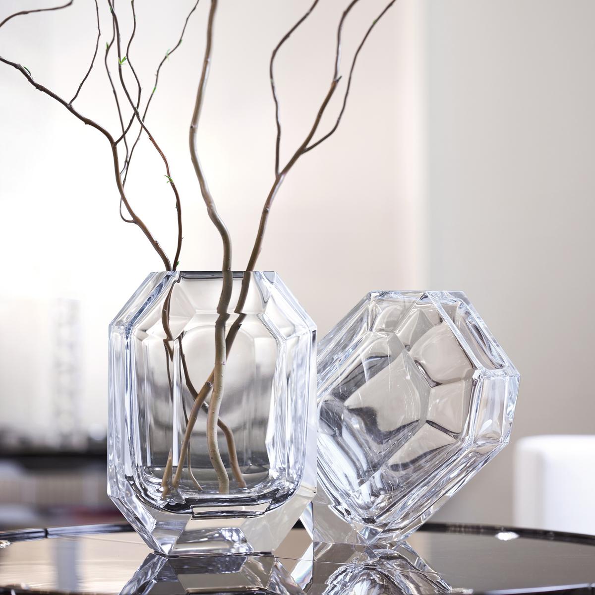 Eine strahlende Ikone erhält eine neue Form. Die Vase "Octogone" von Baccarat ist eine vergrößerte Version des berühmten achteckigen Lüsterbehangs, der die Kronleuchter von Baccarat auszeichnet. Durch ihre Form funkelt die Kristallglas-Vase wie ein gigantischer Edelstein. Ein wahres Schmuckstück, das mit seiner Brillanz jedes Ambiente verschönert und die feinsten Sträuße erstrahlen lässt.