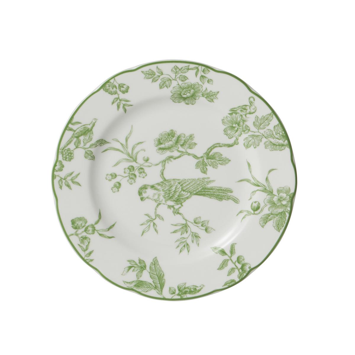 Inspiriert von den klassischen Formen des 18. Jahrhunderts, verleihen geschwungene Ränder und verspielte Details dem Service aus purem Limoges-Porzellan einen charmanten Vintage-Charakter. Die hellen, saftig grünen Dekore im Toile-de-Jouy-Stil zeigen liebenswerte Meisen, Reiher, Enten und Fasane, die sich im frischen Laub wilder Brombeeren tummeln. Ob Frühstück, Lunch, Kaffee und Kuchen oder Dinner, entführen Sie Ihre Gäste in ein anmutiges Idyll im modernen Landhausstil.