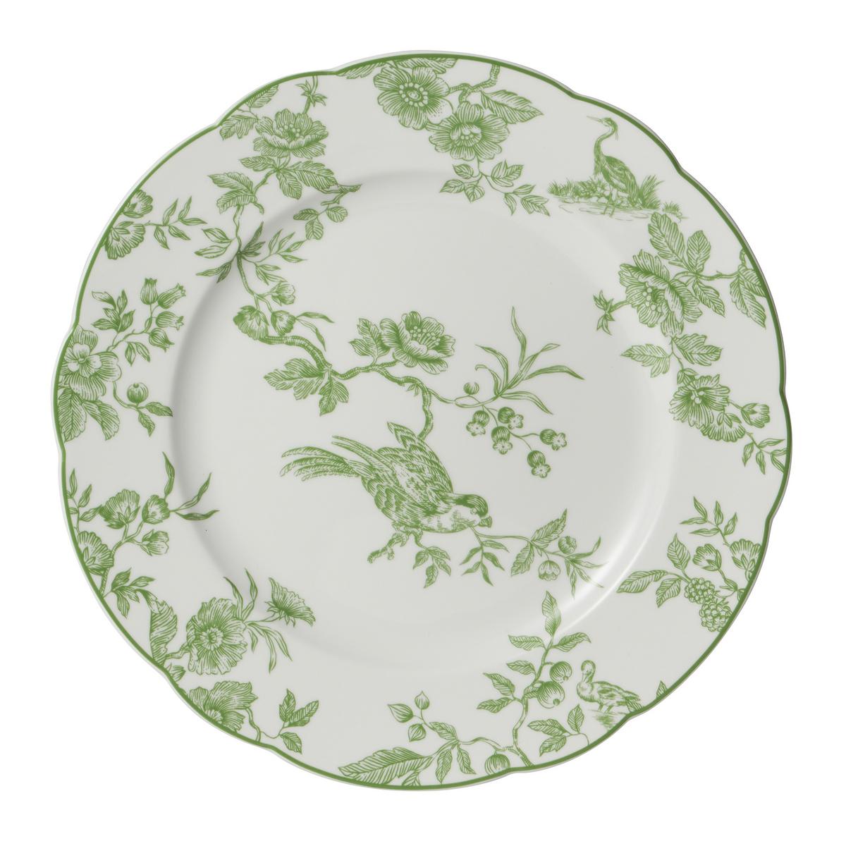 Inspiriert von den klassischen Formen des 18. Jahrhunderts, verleihen geschwungene Ränder und verspielte Details dem Service aus purem Limoges-Porzellan einen charmanten Vintage-Charakter. Die hellen, saftig grünen Dekore im Toile-de-Jouy-Stil zeigen liebenswerte Meisen, Reiher, Enten und Fasane, die sich im frischen Laub wilder Brombeeren tummeln. Ob Frühstück, Lunch, Kaffee und Kuchen oder Dinner, entführen Sie Ihre Gäste in ein anmutiges Idyll im modernen Landhausstil.
