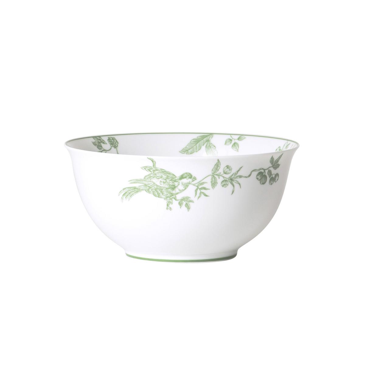 Inspiriert von den klassischen Formen des 18. Jahrhunderts, verleihen geschwungene Ränder und verspielte Details dem Service aus purem Limoges-Porzellan einen charmanten Vintage-Charakter. Die hellen, saftig grünen Dekore im Toile-de-Jouy-Stil zeigen liebenswerte Meisen, Reiher, Enten und Fasane, die sich im frischen Laub wilder Brombeeren tummeln. Ob Frühstück, Lunch, Kaffee und Kuchen oder Dinner, entführen Sie Ihre Gäste in ein anmutiges Idyll im modernen Landhausstil.