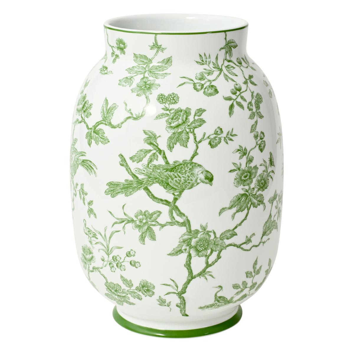 Inspiriert von den klassischen Formen des 18. Jahrhunderts, verleihen geschwungene Ränder und verspielte Details dem Service aus purem Limoges-Porzellan einen charmanten Vintage-Charakter. Die hellen, saftig grünen Dekore im Toile-de-Jouy-Stil zeigen liebenswerte Meisen, Reiher, Enten und Fasane, die sich im frischen Laub wilder Brombeeren tummeln. Ob Frühstück, Lunch, Kaffee und Kuchen oder Dinner, entführen Sie Ihre Gäste in ein anmutiges Idyll im modernen Landhausstil.