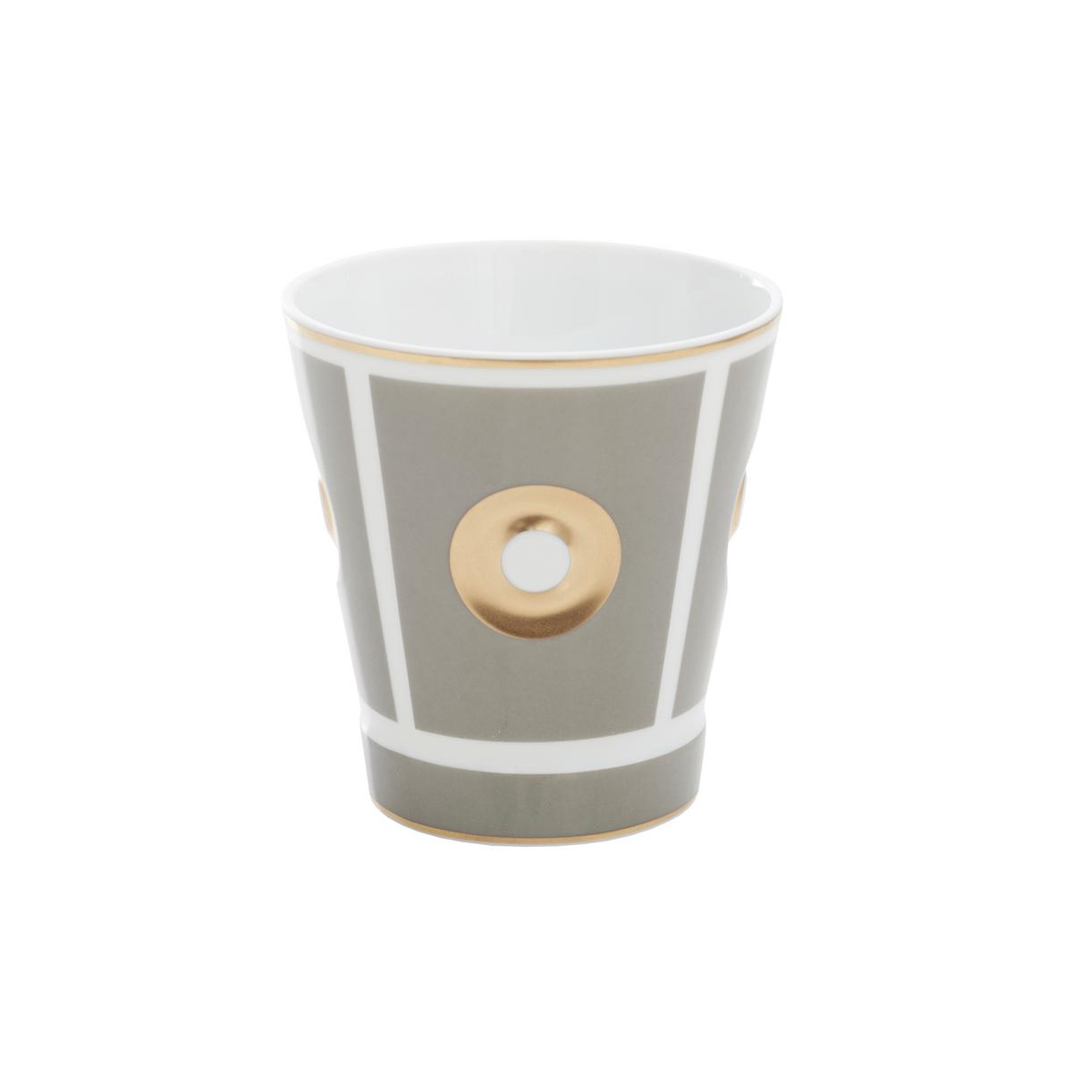 Die Porzellanbecher "Eolie" von Bernardaud sind mit Gold oder Platin veredelt. Die dekorativen Becher können auf vielfältige Weise verwendet werden, zum Beispiel als kleine Tischvase, als Stiftebecher auf dem Schreibtisch, oder als Wasserbecher auf dem Esstisch. Auch mit einer Kerze oder einem Teelicht dekoriert geben die Becher eine gute und sehr elegante Figur ab.