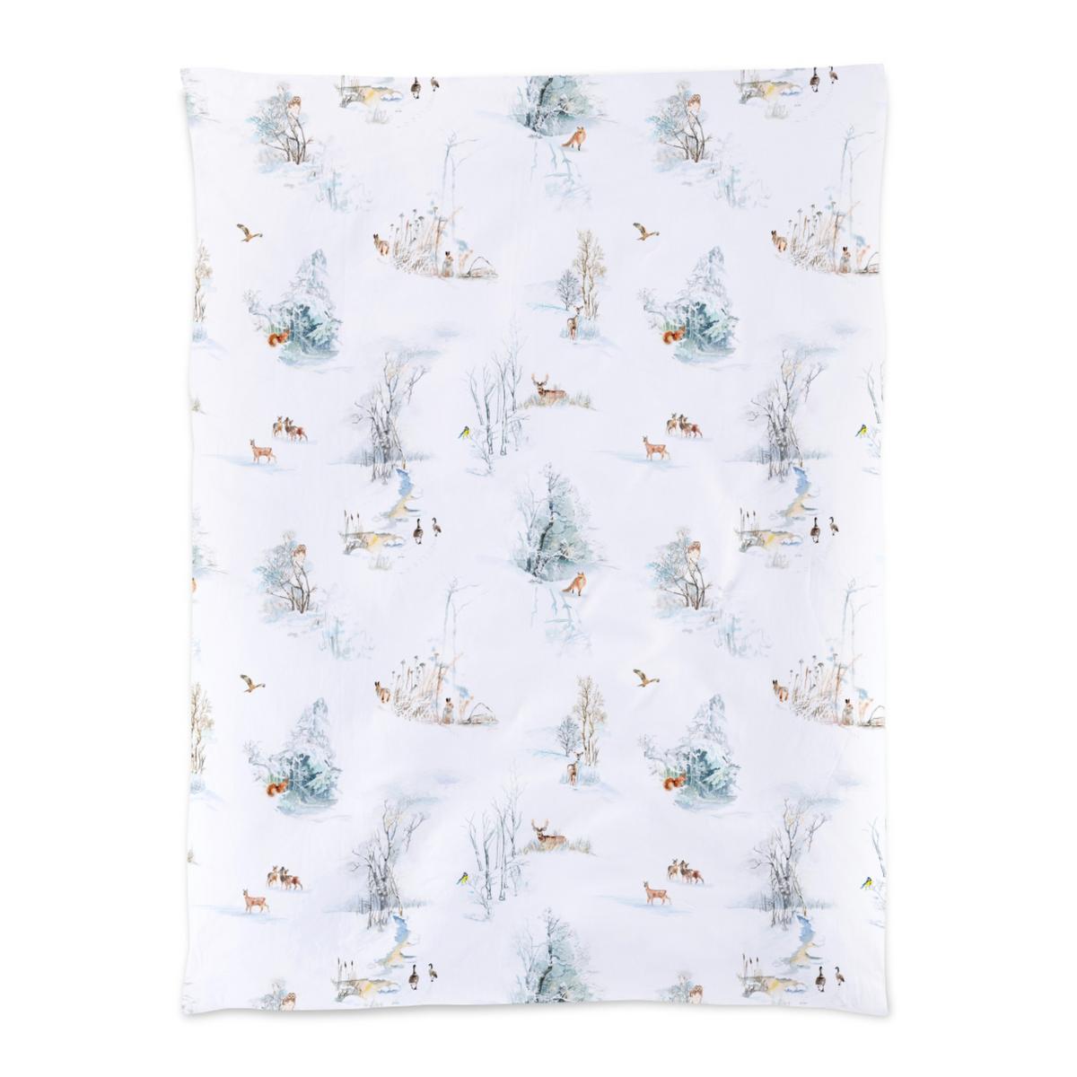 Die Bettwäsche "Finja" von Christian Fischbacher ist ein bezauberndes Design, das in der beliebten Tradition der Christian Fischbacher Handschrift steht. Feine Pinselstriche erwecken Eichhörnchen, verschneite Zwergbirken und die Spuren von Wildgänsen im Schnee zum Leben. Ein majestätischer Rotmilan kreist über der winterlichen Landschaft. In sanften Beige-, Braun- und Blautönen laden die künstlerischen Wintermotive zum Träumen ein.