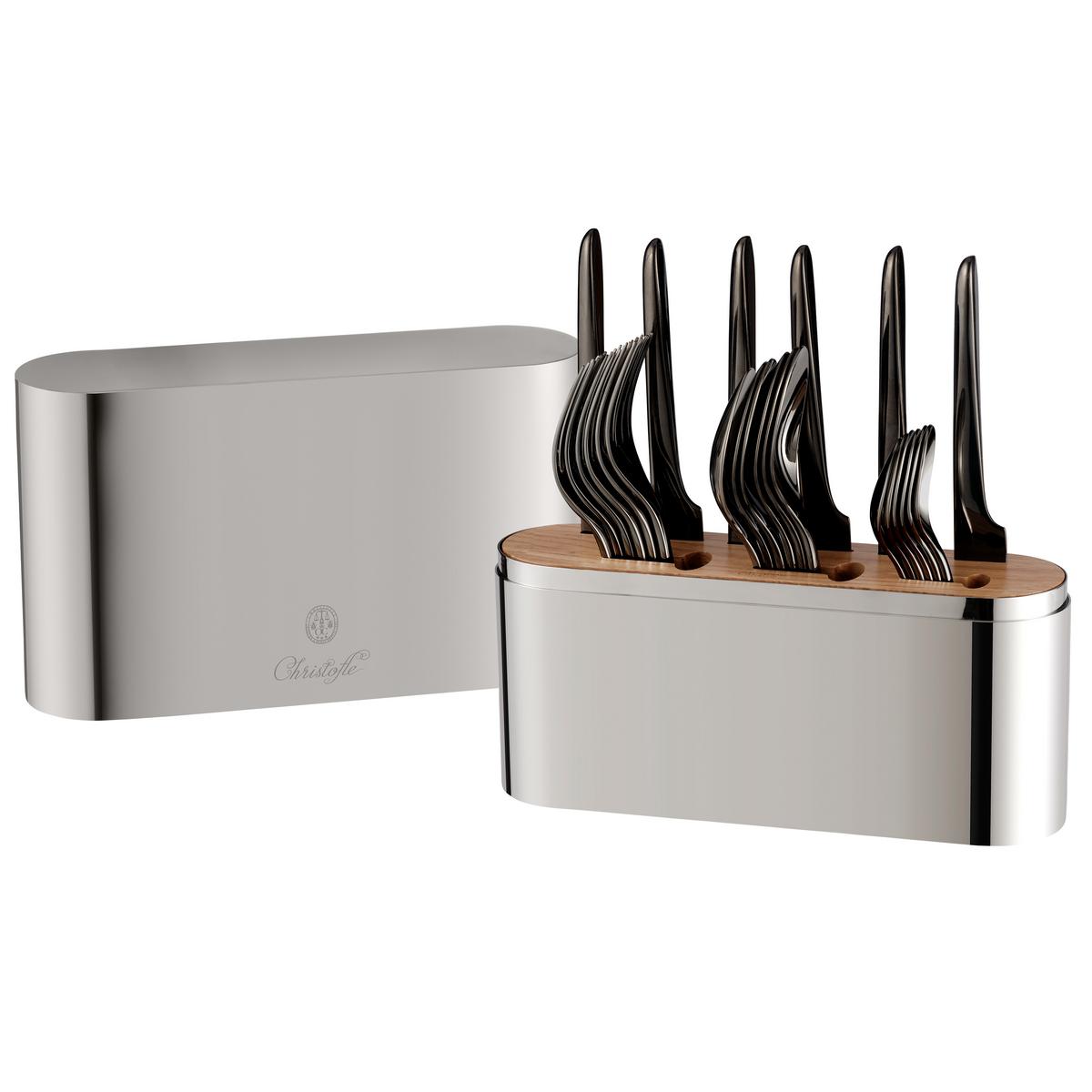 In Anlehnung an die längliche Form des Place de la Concorde in Paris bietet die Besteck-Box "Concorde" von Christofle ausreichend Platz für Edelstahlbesteck für 6 Personen.