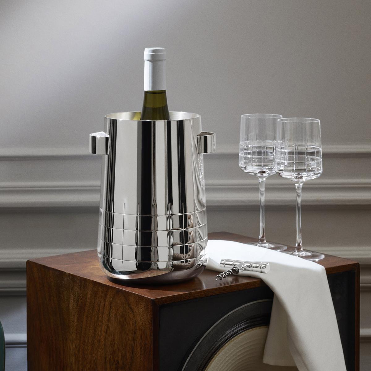 Wie alle Baraccessoires aus der Christofle Kollektion "Graphik" ziert auch den eleganten Weinkühler "Graphik" das markante Gittermuster aus horizontalen und vertikalen Linien. Die Christofle Hochglanzpolitur sorgt für eine echte Strahlkraft des Weinkühlers.