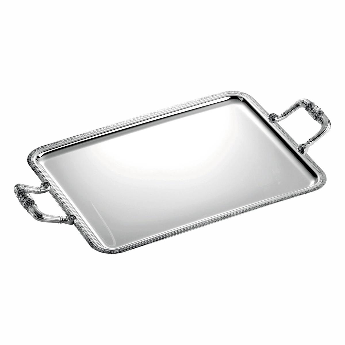 Ein versilbertes Tablett in zwei Größen – jeweils ausgestattet mit repräsentativen Griffen in klassizistischer Manier. Das Tablett "Malmaison" von Christofle garantiert jederzeit einen gewichtigen Auftritt: Ob zum Menü, zum Dessert oder mit Champagnerflöten beladen.