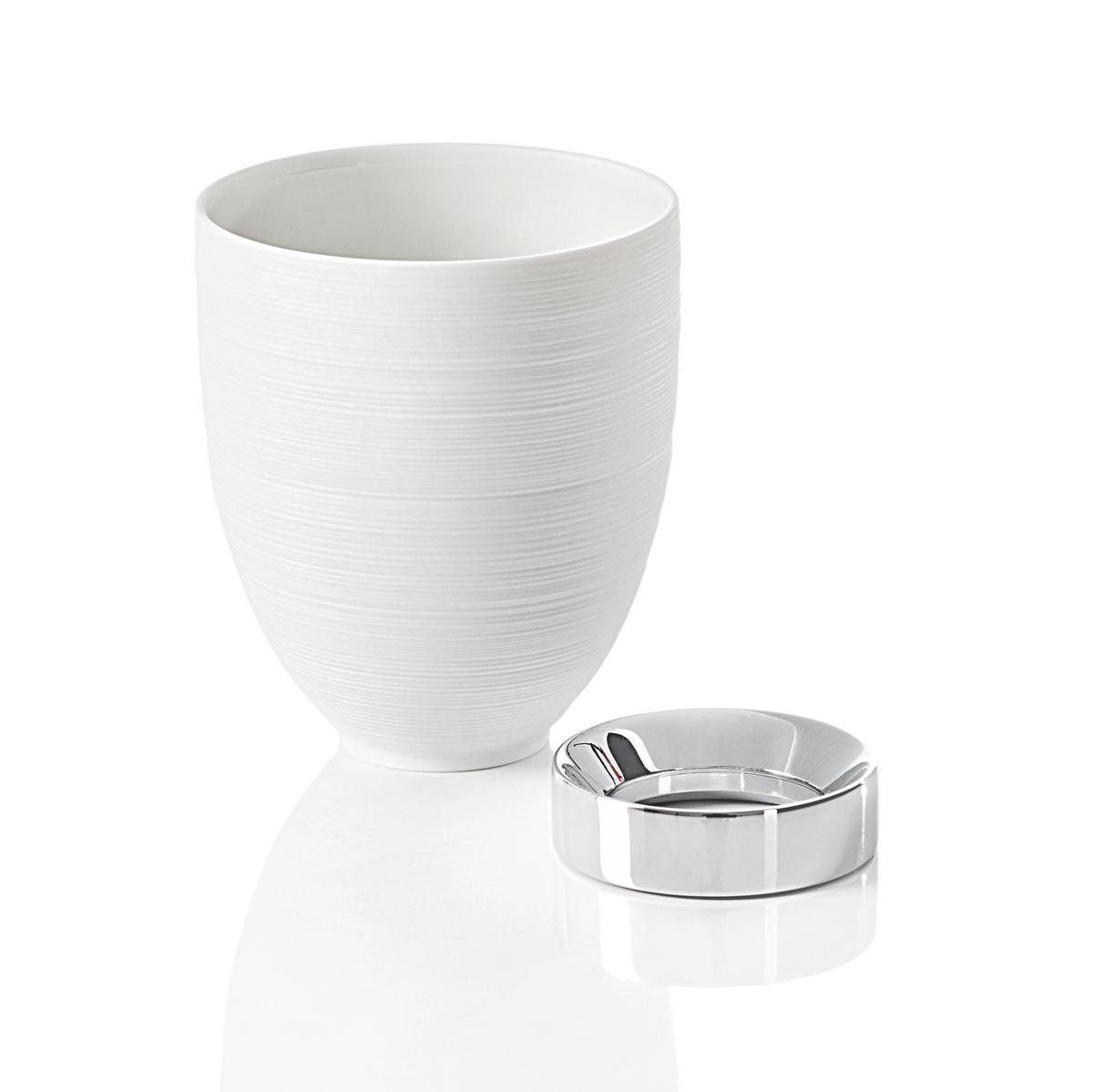 Die verchromten Messingelemente stellt Cristal et Bronze in reiner Handarbeit in ihrer Manufaktur nahe Paris her. Ihr makelloses Chrom-Finish hebt die organische Qualität des Porzellans zusätzlich hervor. Die Kollektion deckt die volle Produktpalette an Cristal et Bronze Badzubehör ab, von Seifenspender und Seifenschale über Ablagetablett bis zur Kleenex-Box.