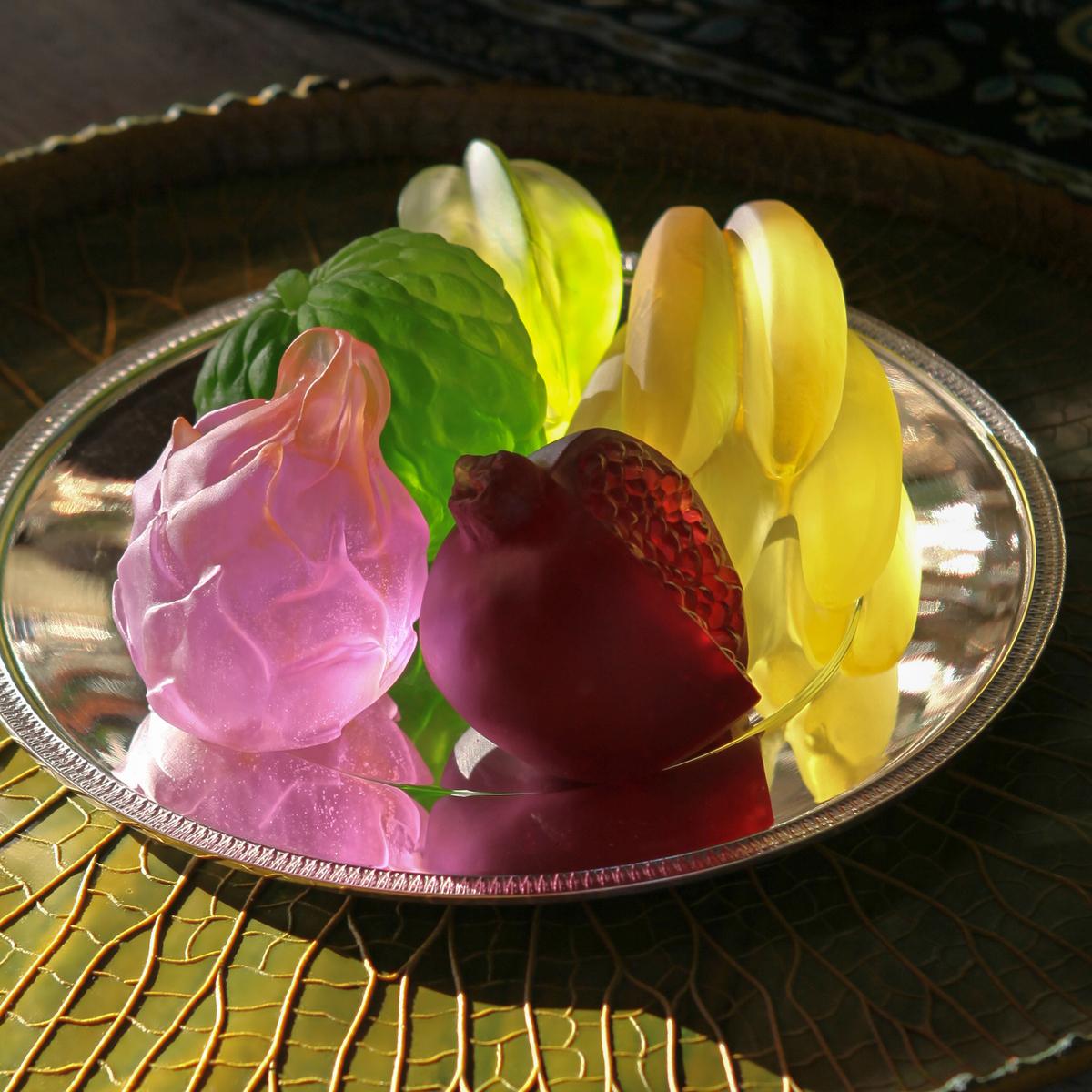 Mit der Kollektion "Tutti Frutti" präsentiert Daum eine außergewöhnliche Zusammenarbeit mit dem Designer Gilles Neveu, der für seine sensible und zeitgenössische Formensprache bekannt ist. Diese erste gemeinsame Kreation zelebriert die Vielfalt der Natur und interpretiert die sinnlichen Formen exotischer Früchte auf mutige und moderne Weise.