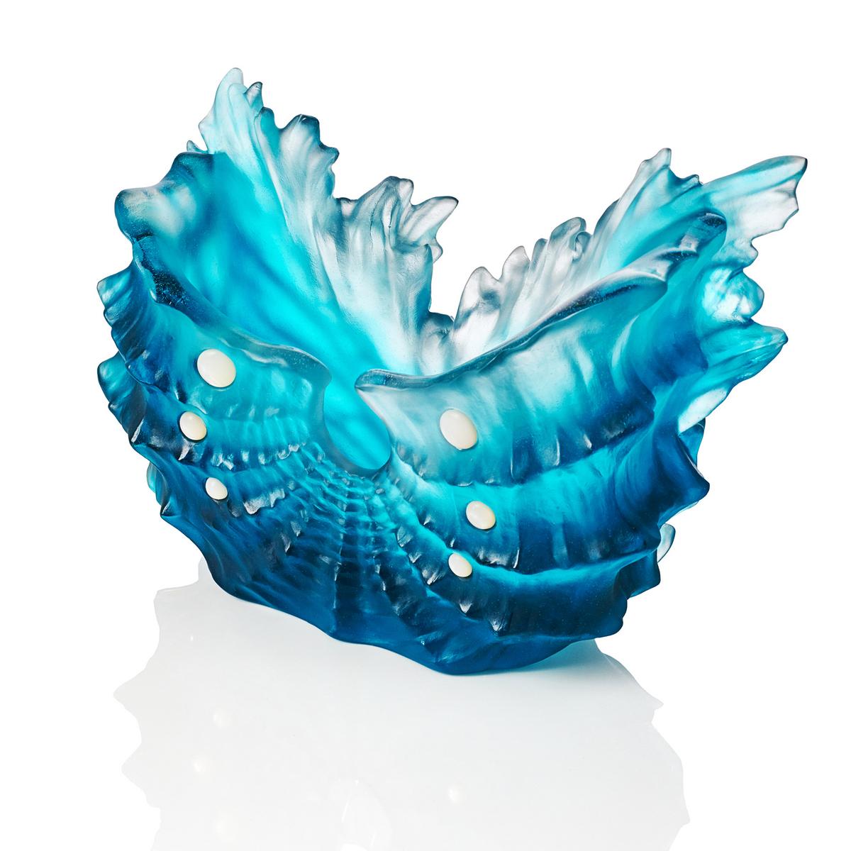 Poesie aus Kristall vom Karibischen Meer. Die Vase "Maya Seashell" von Daum fängt die Schönheit des Meeres in jedem Detail ein. Hergestellt im aufwendigen Lost-Wax-Verfahren aus purem Pâte de Cristal, stecken die fließenden Formen der skulpturalen Vase voller Leben und Bewegung. Die Vase ist limitiert auf 225 Stück.