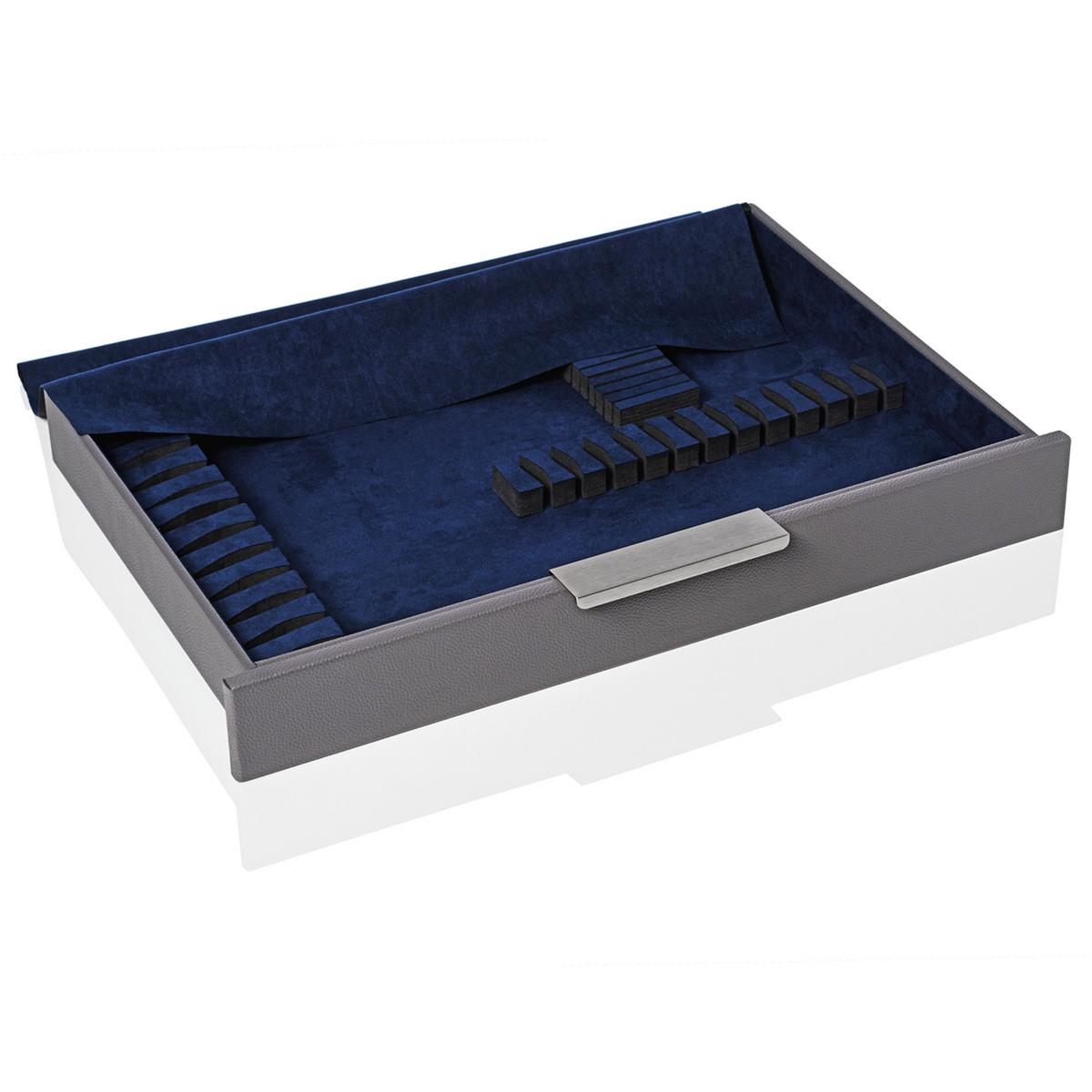Sicher und geschützt lagert Ihr wertvolles Ercuis Besteck in der Besteckkassette für 24 bis 48 Besteckteile. Die Schubfächer sind speziell auf die Bedürfnisse des hochwertigen Bestecks von Ercuis ausgelegt, egal ob Sie ein Besteck aus Sterlingsilber, in der versilberten Fassung oder schlicht aus Edelstahl besitzen. Ihr Besteck bleibt anlaufgeschützt und ist vor Kratzern sicher.