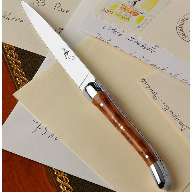 - Griffe aus Thuja, Klinge aus Hochglanz poliertem, rostfreiem Edelstahl