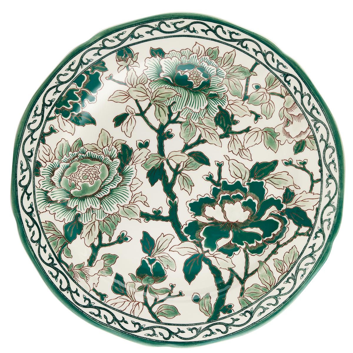 "Pivoines Vertes" von Gien wird aus feinster französischer Fayence vollständig per Hand hergestellt und aufwendig bemalt. Gien Fayencen unterscheiden sich von Porzellan nicht nur durch das Material, sondern auch durch den gebrochenen, weißen Grundfarbton. Fayence ist eine feine, poröse Tonware, die mit einer Glasur überzogen und mehrfach gebrannt wird.