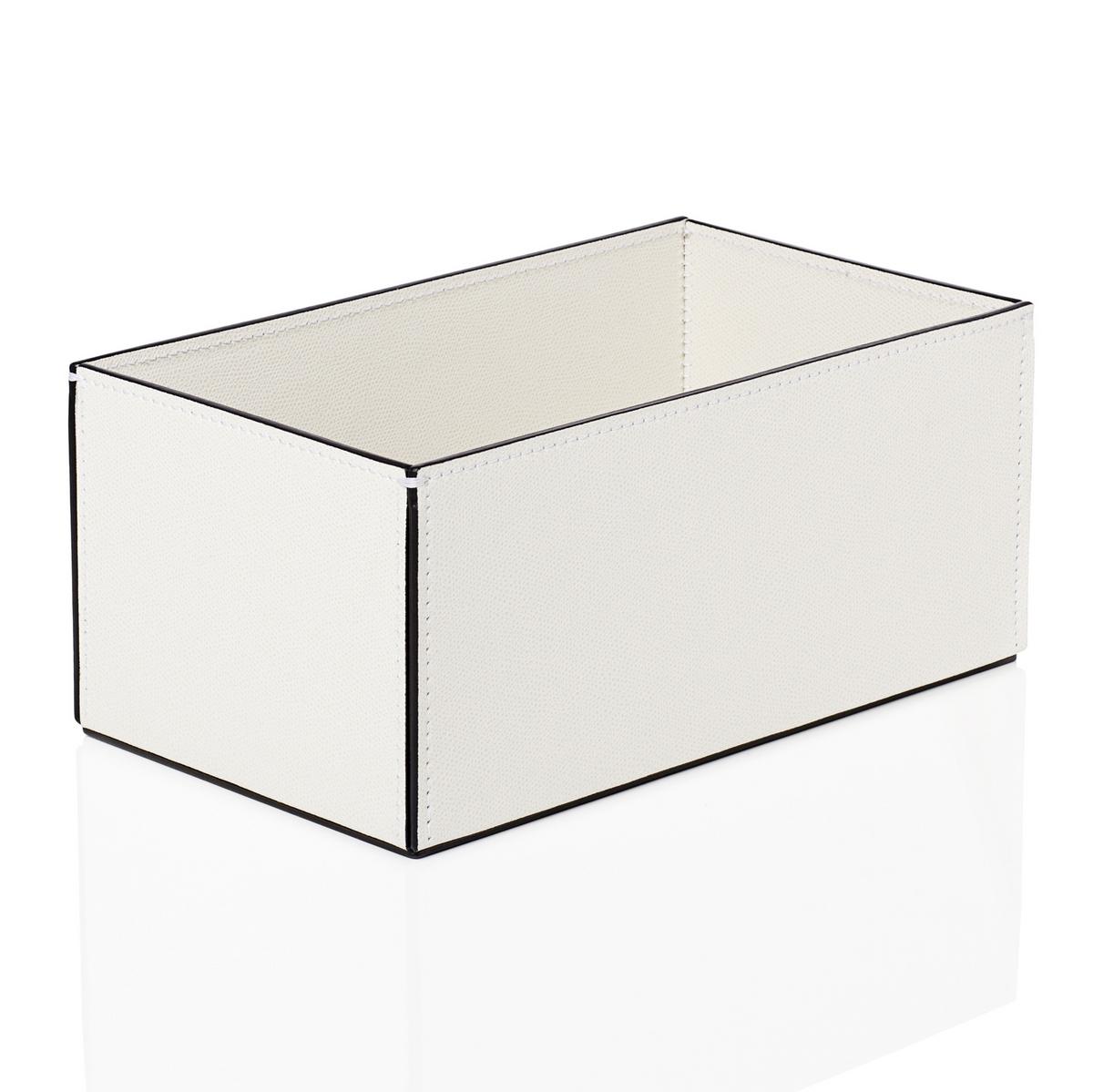 Die Aufbewahrungskörbe "Suite" von GioBagnara sind wahre Organisations-Talente. Zum Beispiel finden in ihnen verschiedene Badutensilien und Seiftücher ihren Platz. Aber auch andere Alltagsgegenstände können dort übersichtlich aufbewahrt werden. Für besonderen Chic sorgen die weißen Ziernähte und das wunderschöne Rindsleder. Durch das wasserfeste und kratzfeste Leder sind die Mehrzweckbehälter von GioBagnara absolut alltagstauglich.