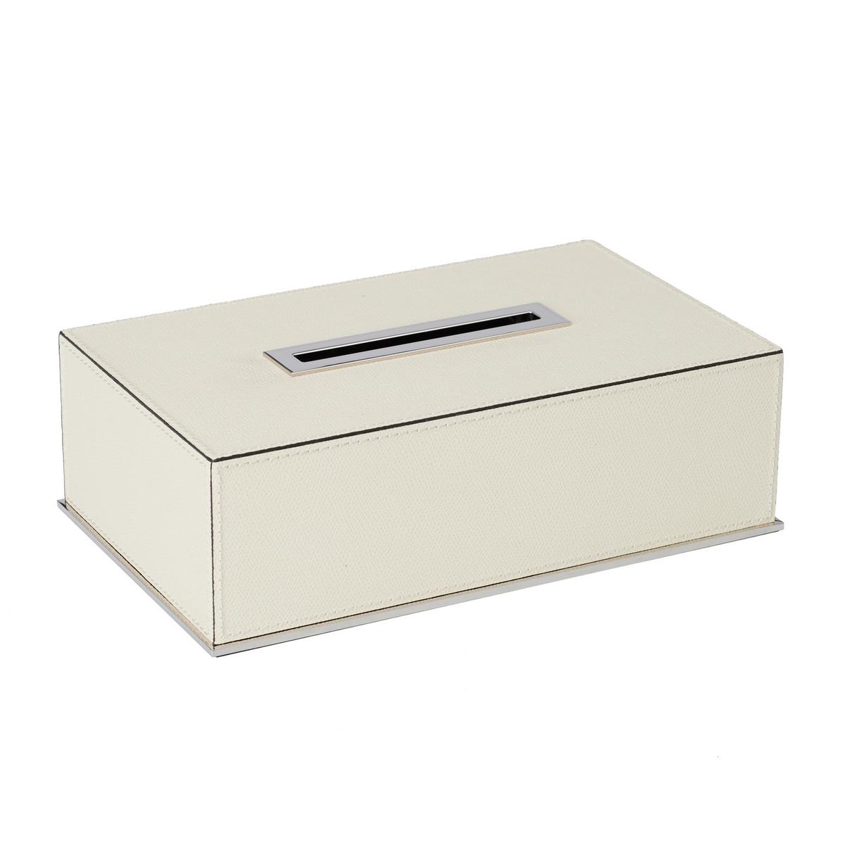 Mit den Kleenex-Boxen "Firenze" von GioBagnara lassen sich einfache Papierspenderboxen im Handumdrehen in edle Designerstücke verwandeln. Die Kleenex-Boxen "Firenze" bestehen aus einem Holzkorpus, der mit robustem Kalbsleder ummantelt wurde. Das Leder ist kratz- und wasserfest und lässt sich mit einem weichem Tuch und milder Seife leicht reinigen. Die Unterseite besitzt einen Klettverschluss, über den sich die Papiertücher blitzschnell einführen und transportieren lassen. Der Rahmen des Bodens und der Öffnung besteht aus platiniertem Messing.