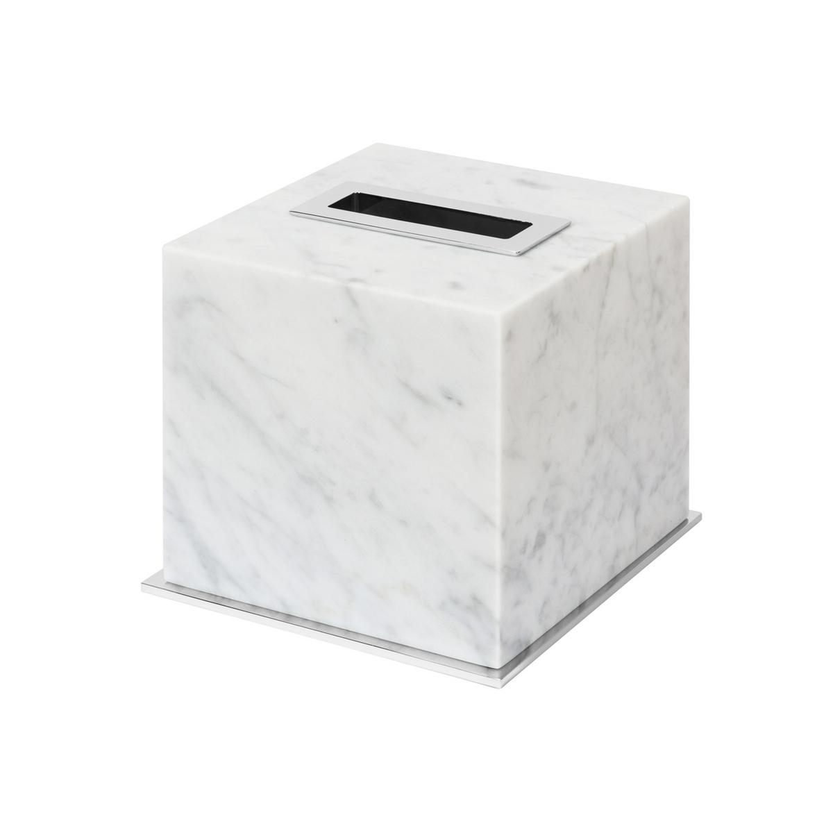 Kleenex-Box "Positano", quadratisch, Chrom & Arabescato von GioBagnara