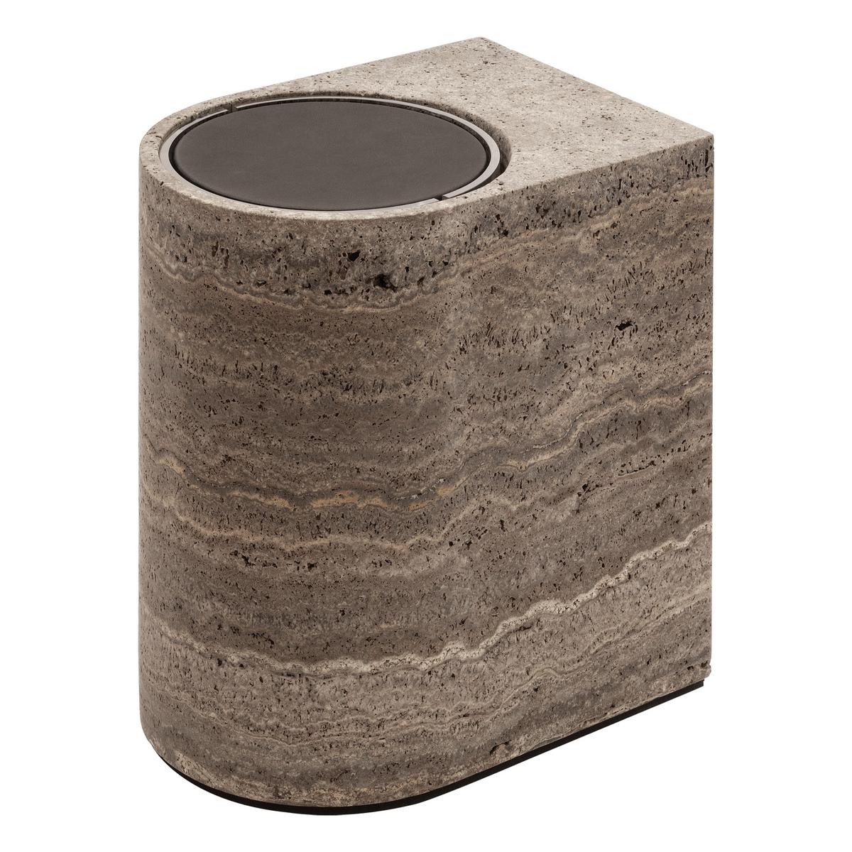 • Handarbeit aus Italien, Travertin Titanium mit Bronze-"Swing"-Deckel und herausnehmbarem Innenbehälter