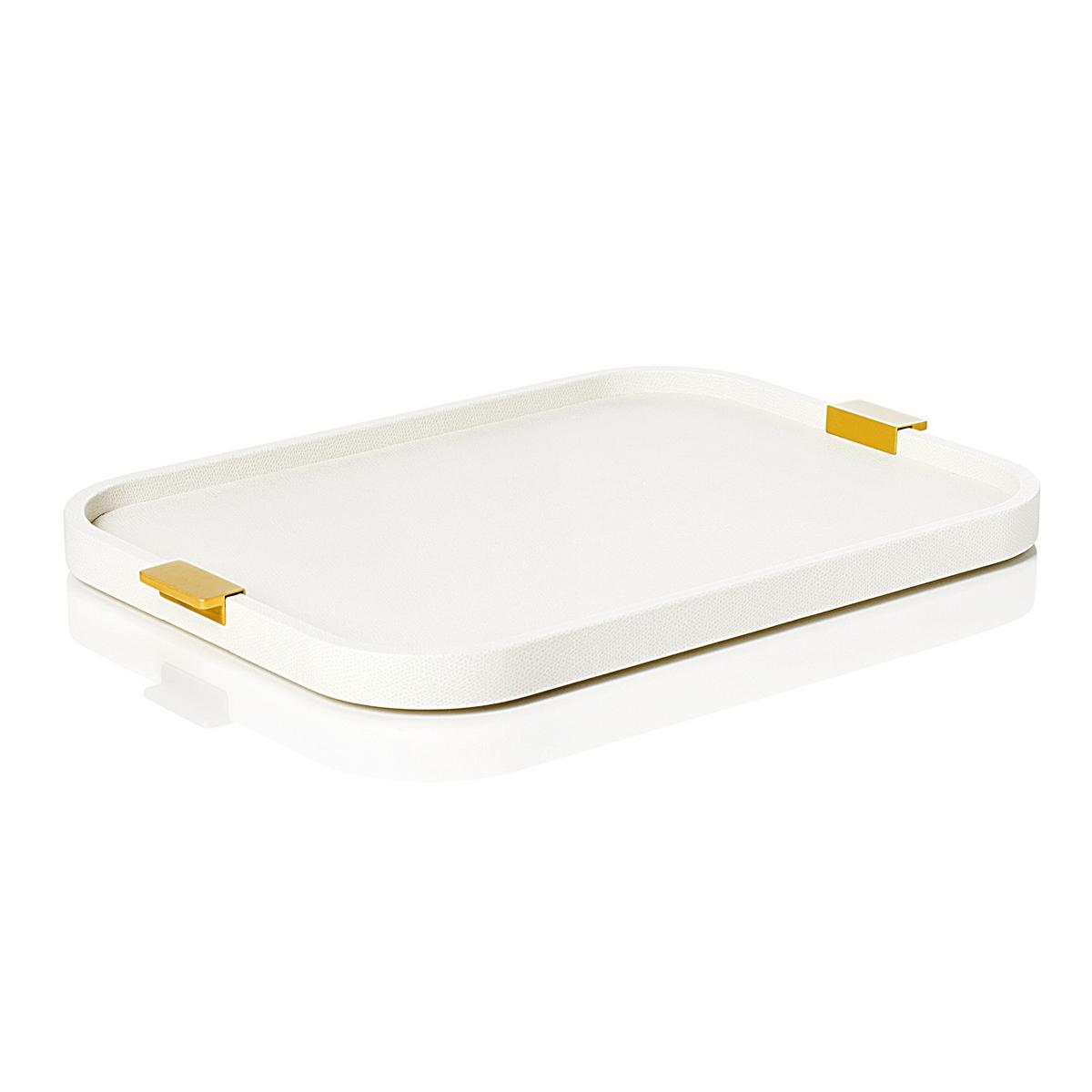 Rechteckiges Tablett "Puccini", Messinggriffe, 41 x 28,5 cm, off white von GioBagnara