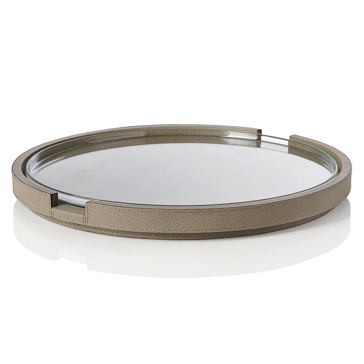 Stilvoll und effizient. Die runden Serviertabletts "Gourmet" von GioBagnara sind im Gedanken des Flying Food gestaltet. Die Tabletts sind von Hand aus feinstem italienischen Kalbsleder gefertigt und mit einer passgenauen Glasplatte ausgestattet. Die Glasplatte lässt sich schnell und einfach entnehmen und wiedereinsetzen. Um den hohen Qualitätsansprüchen von GioBagnara zu genügen, besteht die Glasplatte aus Borosilikat-Glas. Damit ist sie besonders leicht, hygienisch und temperaturbeständig.