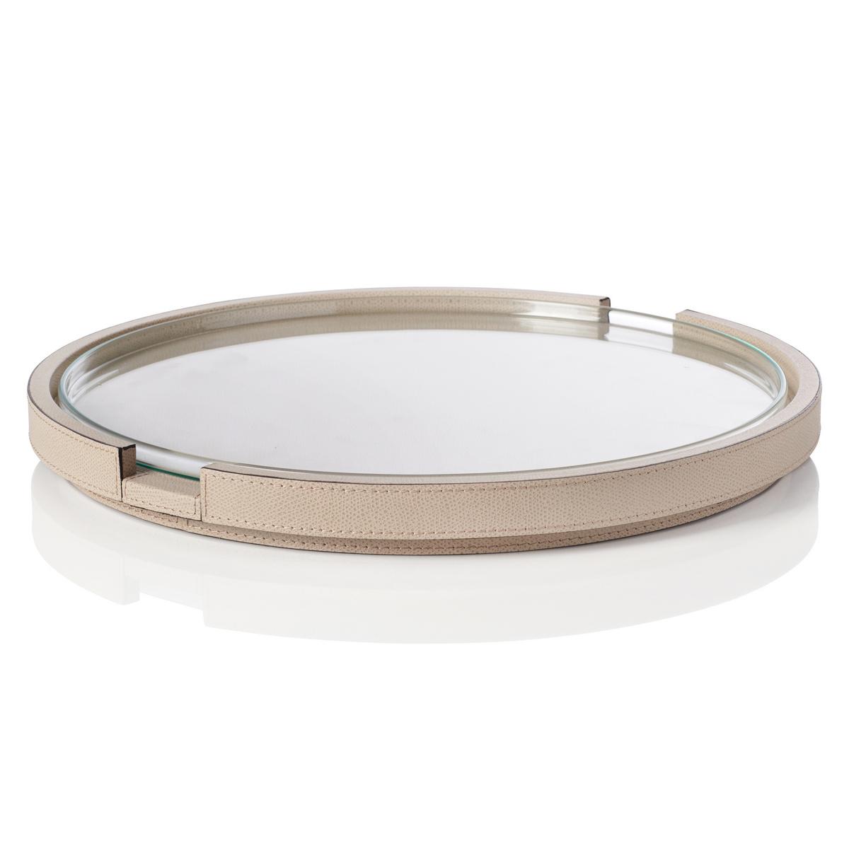 Stilvoll und effizient. Die runden Serviertabletts "Gourmet" von GioBagnara sind im Gedanken des Flying Food gestaltet. Die Tabletts sind von Hand aus feinstem italienischen Kalbsleder gefertigt und mit einer passgenauen Glasplatte ausgestattet. Die Glasplatte lässt sich schnell und einfach entnehmen und wiedereinsetzen. Um den hohen Qualitätsansprüchen von GioBagnara zu genügen, besteht die Glasplatte aus Borosilikat-Glas. Damit ist sie besonders leicht, hygienisch und temperaturbeständig.