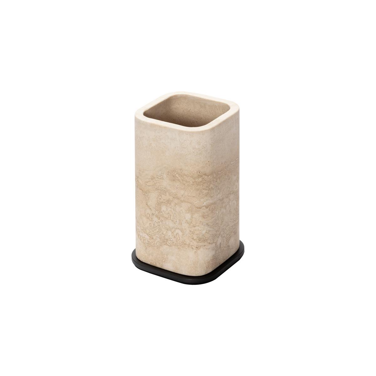 Zeitloses Design, verewigt in Stein. Die Badaccessoires "Polo" von GioBagnara sind der Botschafter des mediterranen Lebensgefühls für Ihre Bäder. Die Accessoires bestehen aus römischem Travertin, einem warmgelben Naturstein, aus dem bereits das Kolosseum und die Säulen des Petersplatzes erbaut wurden. Seine organische Schönheit mit einer feinen Bänderung und kleinen Poren verleihen der Kollektion einen urbanen, architekturalen Charakter. Oberflächen, die häufig mit Wasser in Berührung kommen, sind extra geglättet, damit Wasser ideal abfließen kann. Messing-Elemente mit matt-schwarzem Bronzefinish sowie rutsch- und wasserfeste Gummiböden perfektionieren die Balance aus Form und Funktion.
