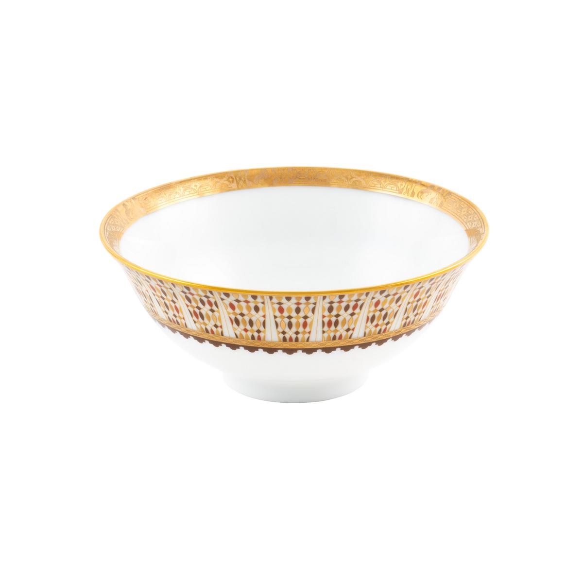 Das Leitmotiv der Kollektion ist ein im mittelalterlichen Stil als Zelter geschmückter Andalusier, eingerahmt von einem arabischen Maschrabiyya-Fenster. Neben der mehrfarbigen Ausführung auf den Platz- und Brottellern findet sich das Motiv auch in den schillernden Zierrändern und als Silhouette im Inneren der Tassen sowie auf den Untertassen. Die großzügigen Goldapplikationen beweisen die Eleganz und Raffinesse der Porzellanmanufaktur und erheben die Kollektion in die Exzellenz der modernen Tafelkultur.
