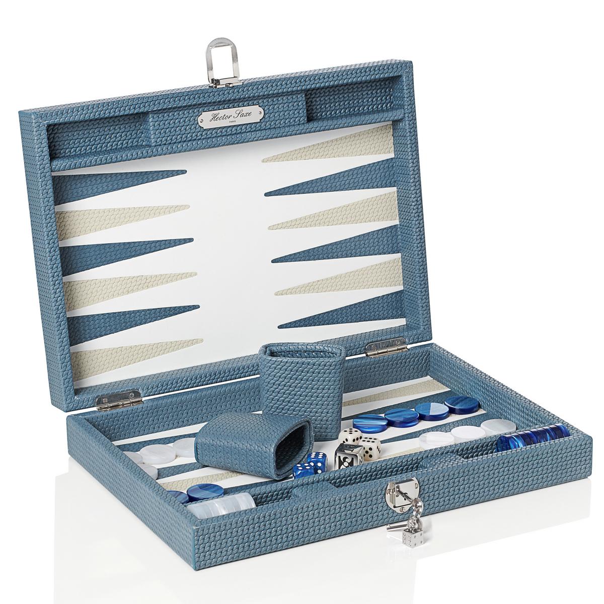 Für Liebhaber, die ihre Leidenschaft mit Stolz präsentieren. Erheben Sie das Spiel zur Kunst mit den Backgammon-Spielen "Carla" von Hector Saxe. Hergestellt von Hand aus bestem Rindsleder, verwischen die edlen Backgammonkoffer die Grenzen zwischen Kunst- und Gebrauchsobjekt.