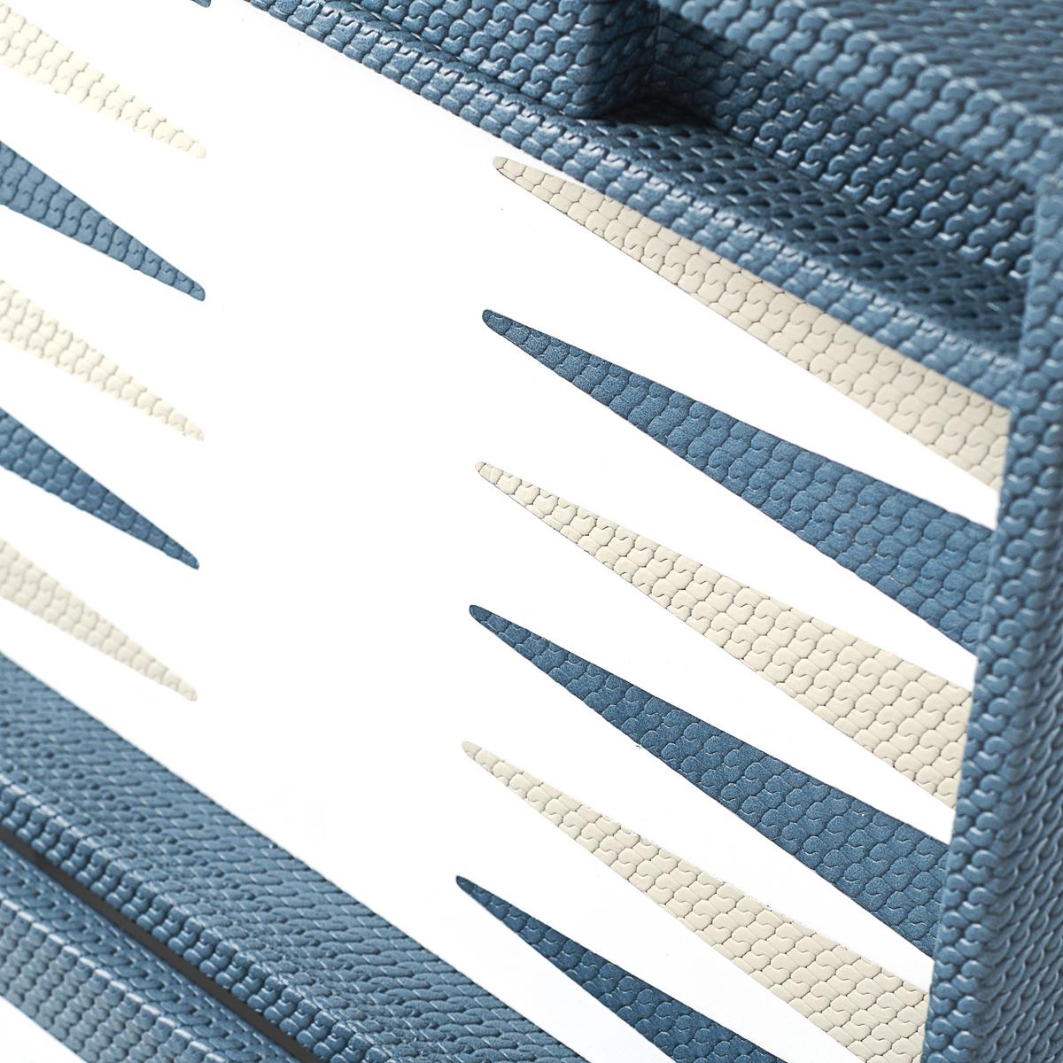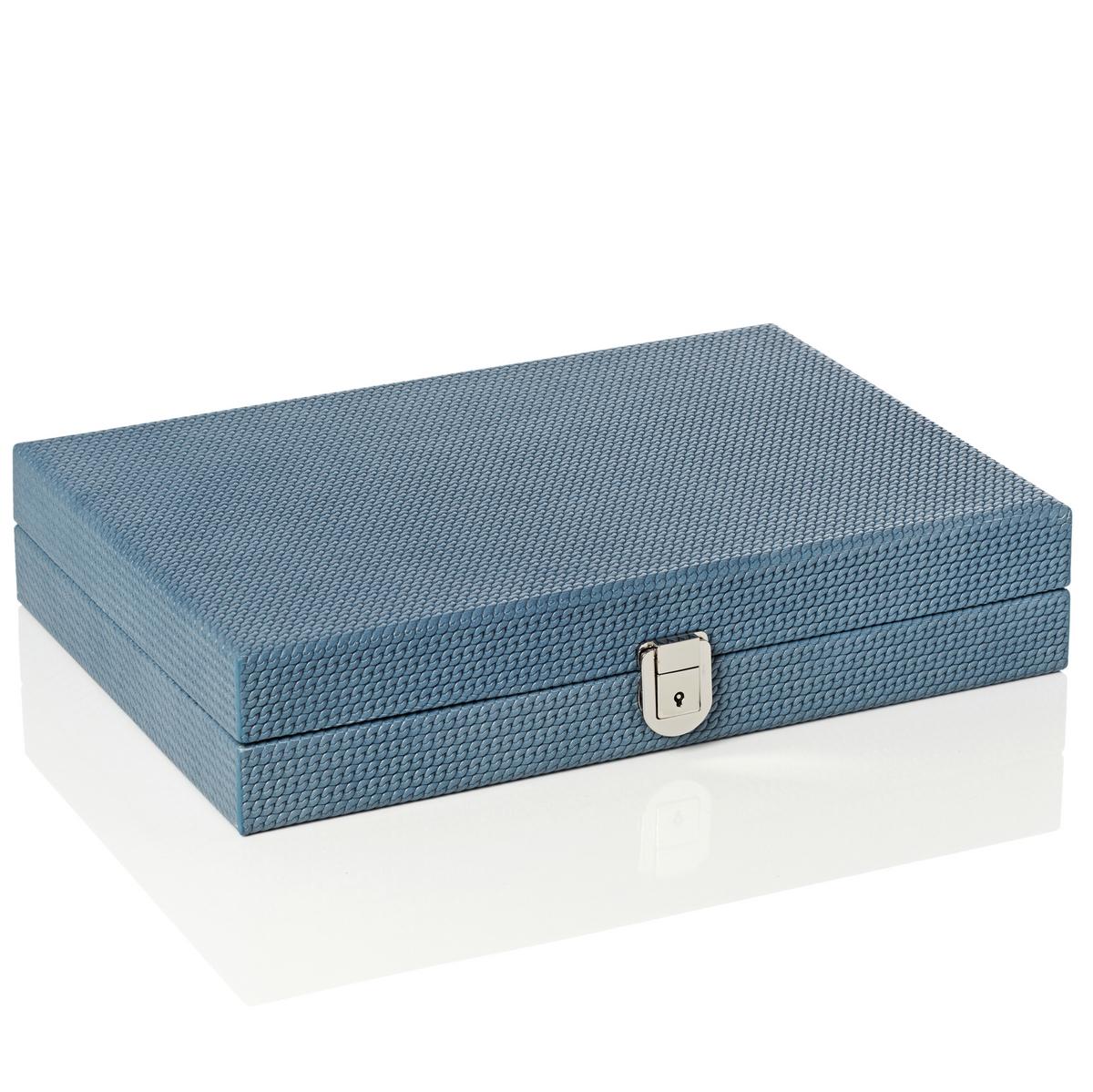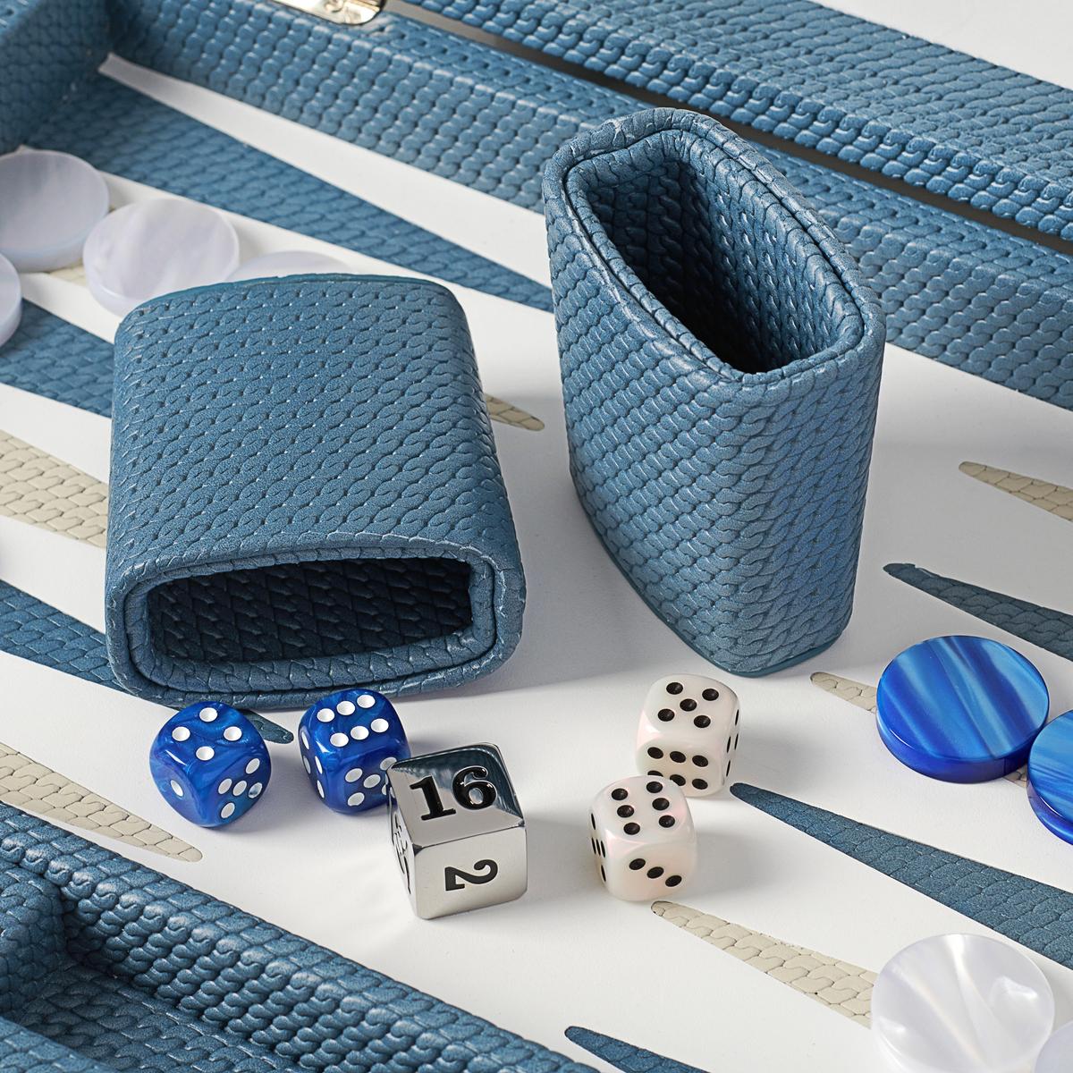 Das Merkmal der Kollektion "Carla" ist die detailreiche Kettenprägung, die sich auf dem Koffer, den Zungen und den Würfelbechern wiederfindet. Der Rest des Spielfelds ist für einen reibungslosen Spielablauf mit glattem Leder überzogen. Die in höchster Handwerkskunst verarbeiteten Lederoberflächen machen das Set offen wie geschlossen zum unwiderstehlichen Blickfang, der jedes Mal aufs Neue zu einer schnellen Partie verführt.