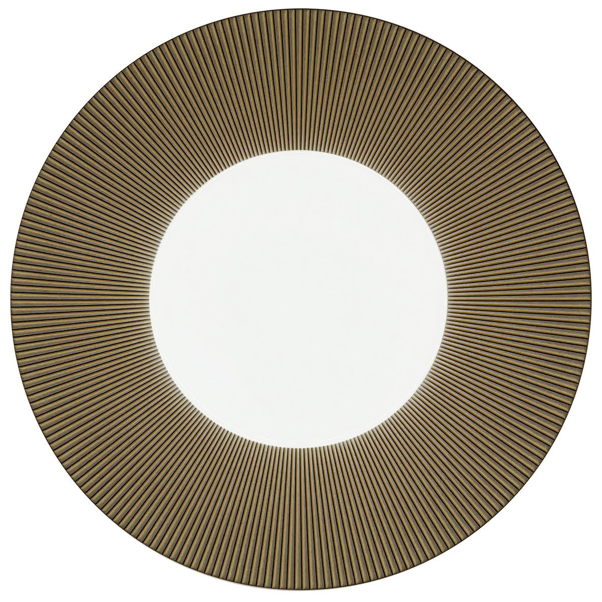 Raffiniertes Porzellan mit Strahlkraft. Das Tafelservice "Bolero Irisé Brun" von J.L Coquet zieht mit einer subtilen Illusion alle Blicke auf sich. Je nach Blickwinkel wechseln die Farben der matten Ränder zwischen Gold und Taupe-Braun. Eine ausgeklügelte Verteilung der Farben auf dem feinen Rillenmuster, dem Merkmal der Bolero-Form, macht das magische Wechselspiel möglich. Die edlen Erdtöne betonen die reichen Texturen des matten Porzellans und verleihen der Kollektion eine beispiellose organische Wärme.