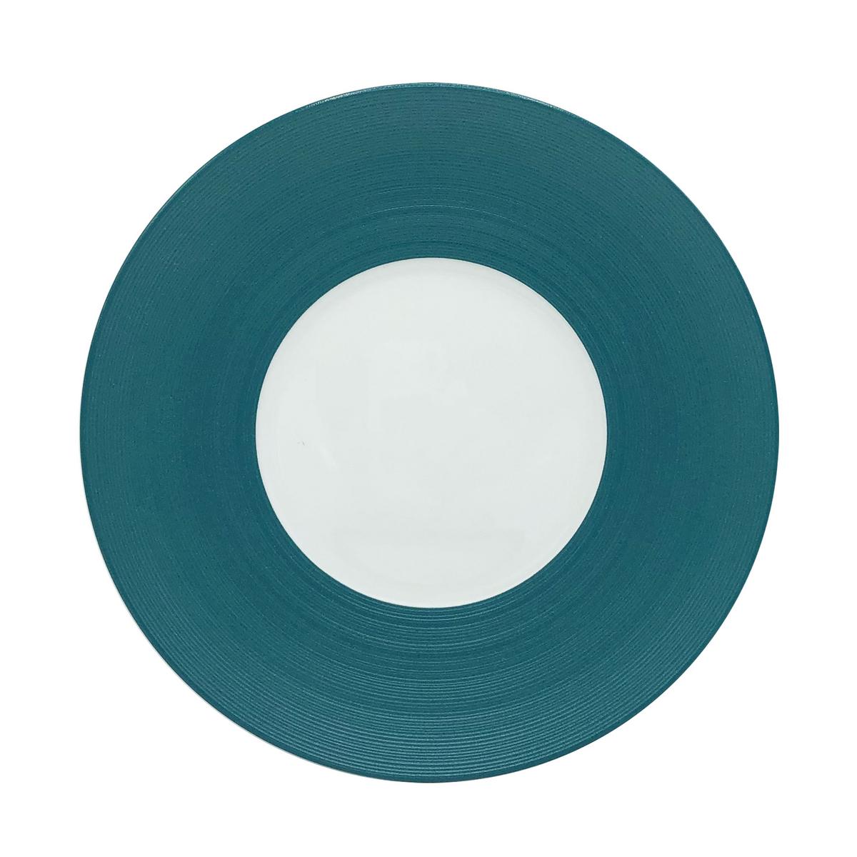 Französisches Porzellan in persischem Blau. Das Tafelservice "Hémisphère Bleu Persan" von J.L Coquet schimmert in einem bezaubernden, tiefen Petrolton. Der warme Farbton ist vom historischen Persisch-Blau inspiriert, einem ikonischen Türkiston aus der Welt der arabischen Keramik. Auf dem feinen Rillenmuster der renommierten "Hémisphère" Porzellanserie entwickelt das intensive Blaugrün eine magische Anziehungskraft, die Speisen unwiderstehlich in Szene setzt.